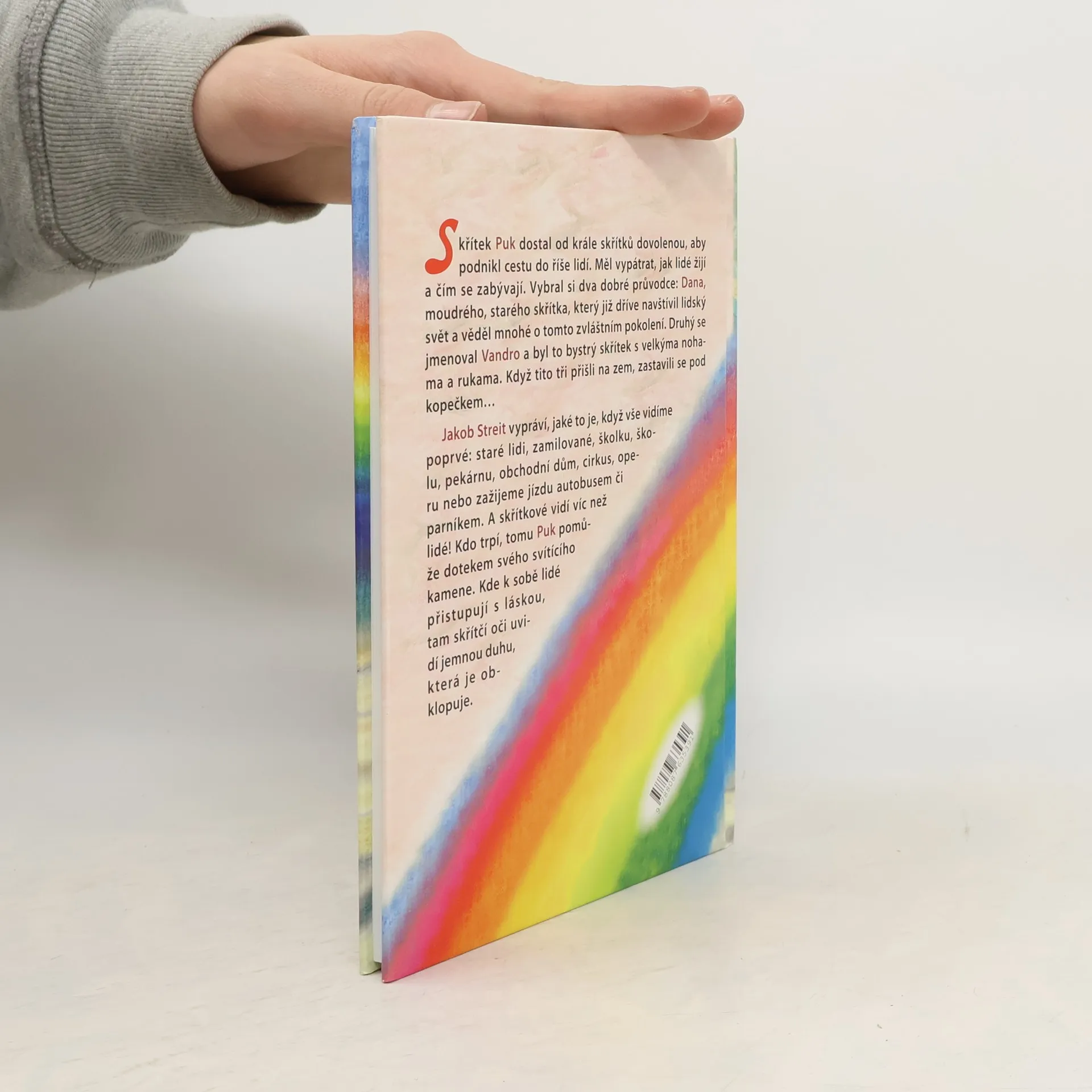 Jakob Streit ve své knize vypráví, jaké to je, když kolem sebe poprvé vidíme různé děje a věci, jako např. zamilované mladé lidi, starší lidi, školu, školku, pekárnu, cirkus a podobně nebo zažijeme jízdu autobusem nebo parníkem. Vypráví, jak skřítkové vidí více než lidé. A tomu kdo trpí, Puk pomůže dotekem svého svítícího zázračného kamene. A jaké zázračné věci se dějí, když lidé k sobě přistupují s láskou. A ještě mnoho jiných věcí skřítkové ve světě lidí zažijí. Kniha je dlouho rozebraná, stále je žádaná a dětmi je velice oblíbená.