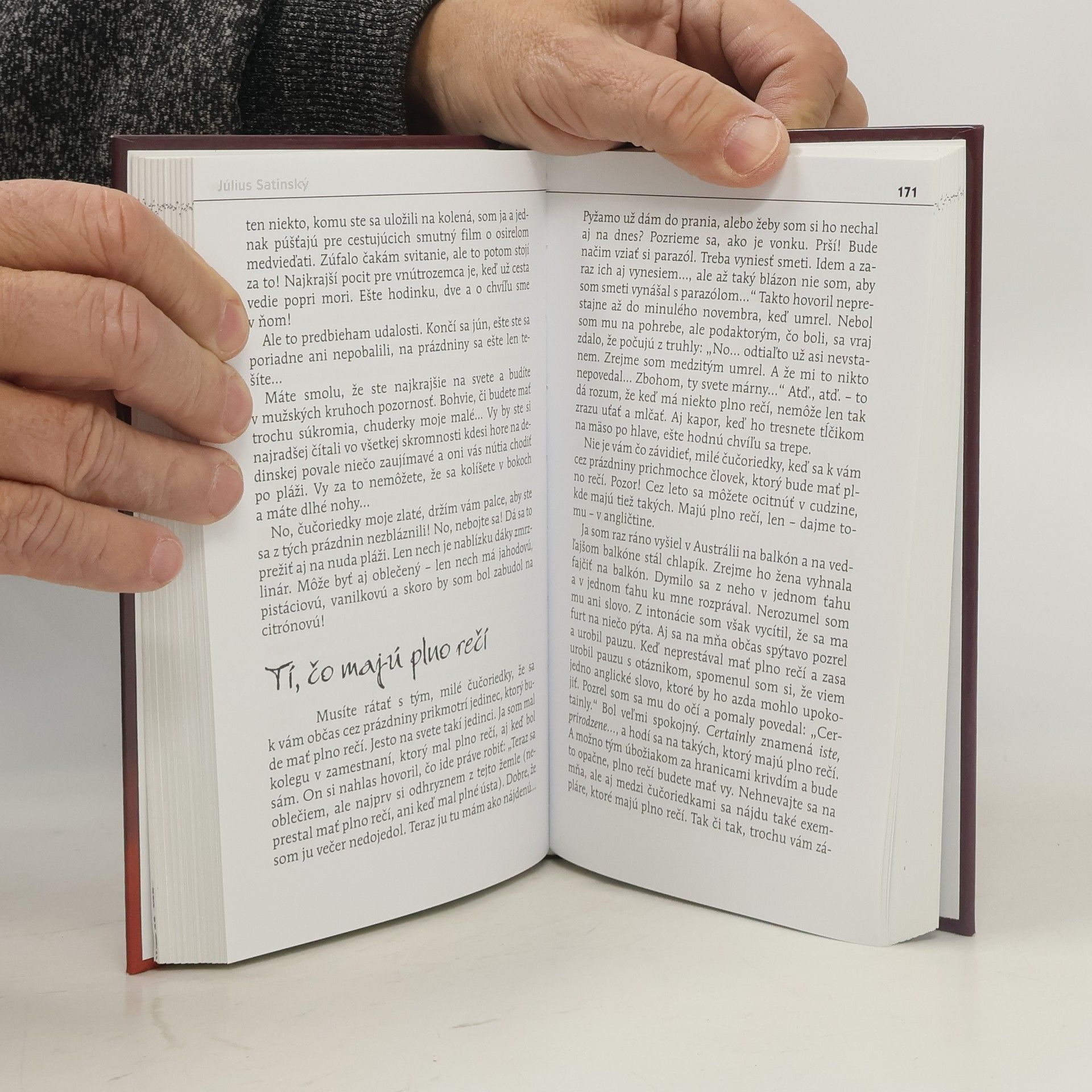 Kniha je výberom autorových fejtónov z rovnomennej úspešnej rozhlasovej relácie. Svojím skvelým rozprávačstvom vystihuje mnoho podstatného o slabostiach i silných stránkach človeka bez ohľadu na vekovú kategóriu. Kto pozná herecké i spisovateľské umenie J. Satinského, vie, že sa zabaví, zasmeje i poučí, aj keď má tínedžerské roky dávno za sebou.