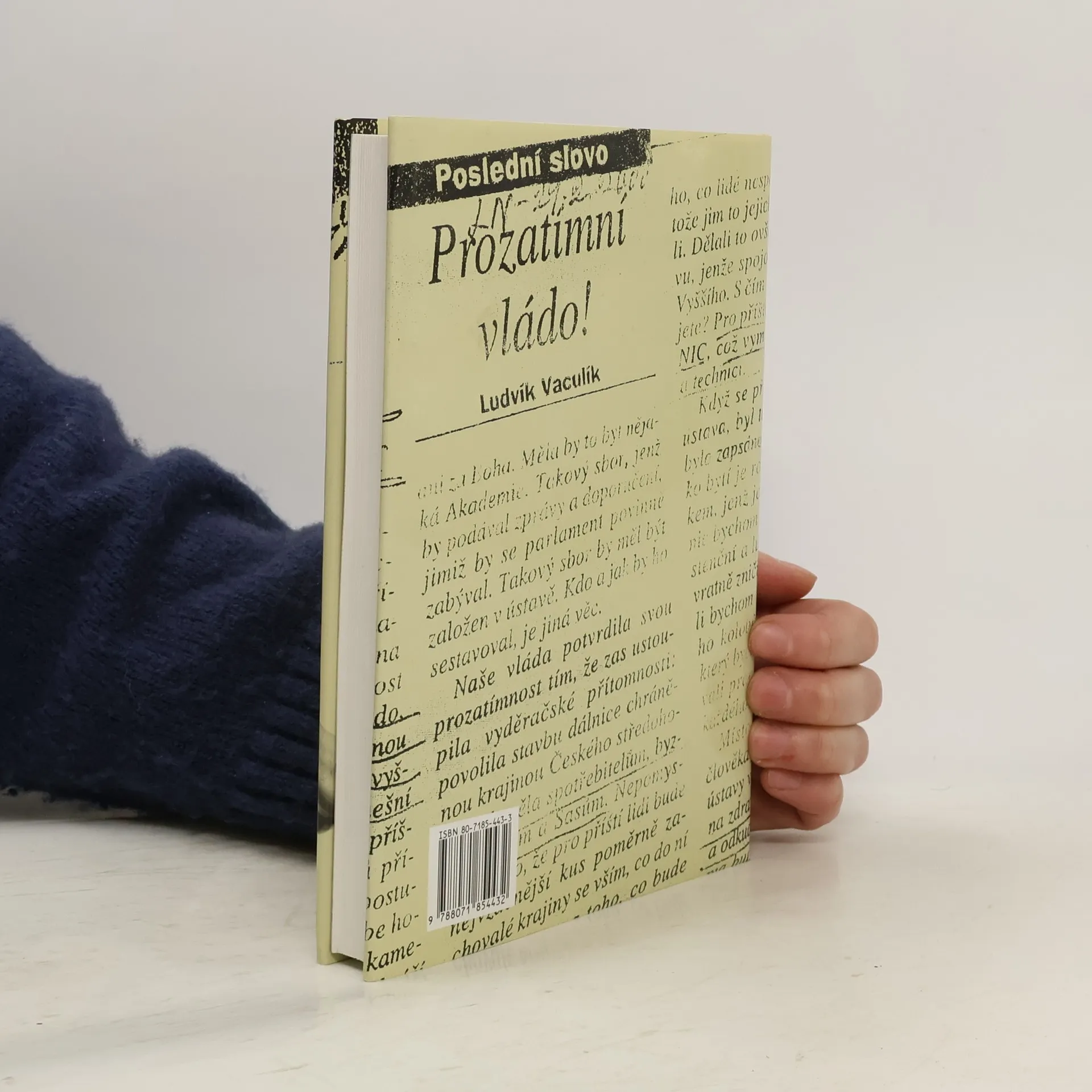 Výbor z fejetonů Výběr z fejetonů, které vycházejí pod názvem Poslední slovo v Lidových novinách. Aktuální události či momentální problémy společnosti sloužívají autorovi k zamyšlení nad obecnějšími jevy společenského dění doma i ve světě. Čteme-li tyto fejetony zpětně v celku, zjistíme, že jsou nejen stále živé, třebaže se týkají věcí již minulých, ale zřetelněji také pocítíme - při rozmanitosti, prolínání a opakování témat -, především onu už pro Vaculíka příslovečnou nekonvenčnost, originalitu myšlení.