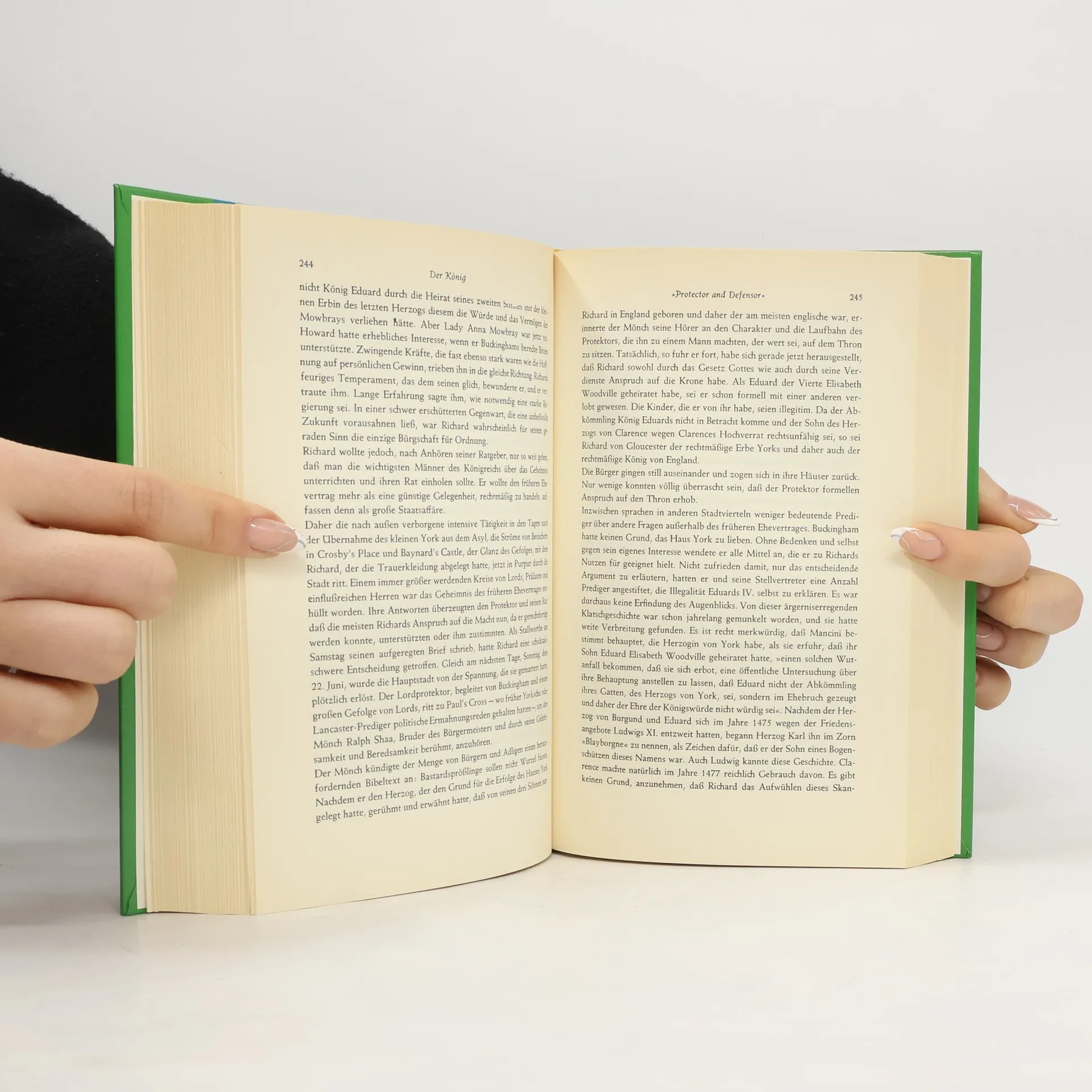 Richard III., zweifellos ein Mann von hoher Begabung, voll Tatkraft und persönlichen Muts, war ein treuer Gefolgsmann seines älteren Bruders Eduard IV., nach dessen Tod er sich, eher durch äußeren Zwang als durch Herrschsucht gedrängt, seiner jugendlichen Neffen entledigte und seine Hände nach der Krone ausstreckte. Nur zwei Jahre lang regierte er großmütig und gerecht als ein König von Gottes Gnaden. Im Kampf gegen die Tudors fiel er erst 32 Jahre alt.Nach dieser Niederlage hatte Heinrich VIII. ein Interesse daran seine eigene Dynastie zu rechtfertigen.