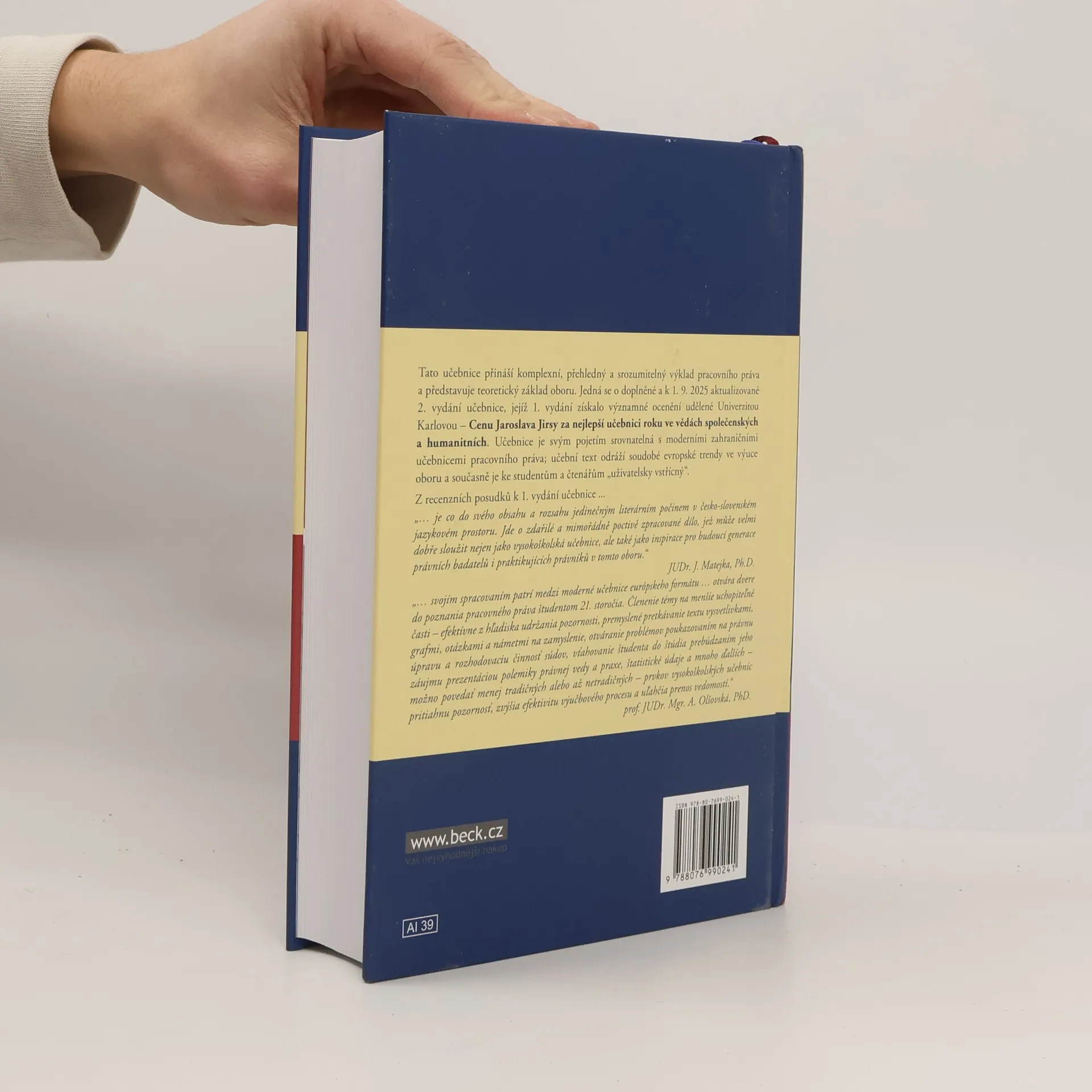 Tato učebnice přináší komplexní, přehledný a srozumitelný výklad pracovního práva a představuje teoretický základ oboru. Jedná se o doplněné a k 1. 9. 2025 aktualizované 2. vydání učebnice, jejíž 1. vydání získalo významné ocenění udělené Univerzitou Karlovou - Cenu Jaroslava Jirsy za nejlepší učebnici roku ve vědách společenských a humanitních. Učebnice je svým pojetím srovnatelná s moderními zahraničními učebnicemi pracovního práva; učební text odráží soudobé evropské trendy ve výuce oboru a současně je ke studentům a čtenářům "uživatelský vstřícný".