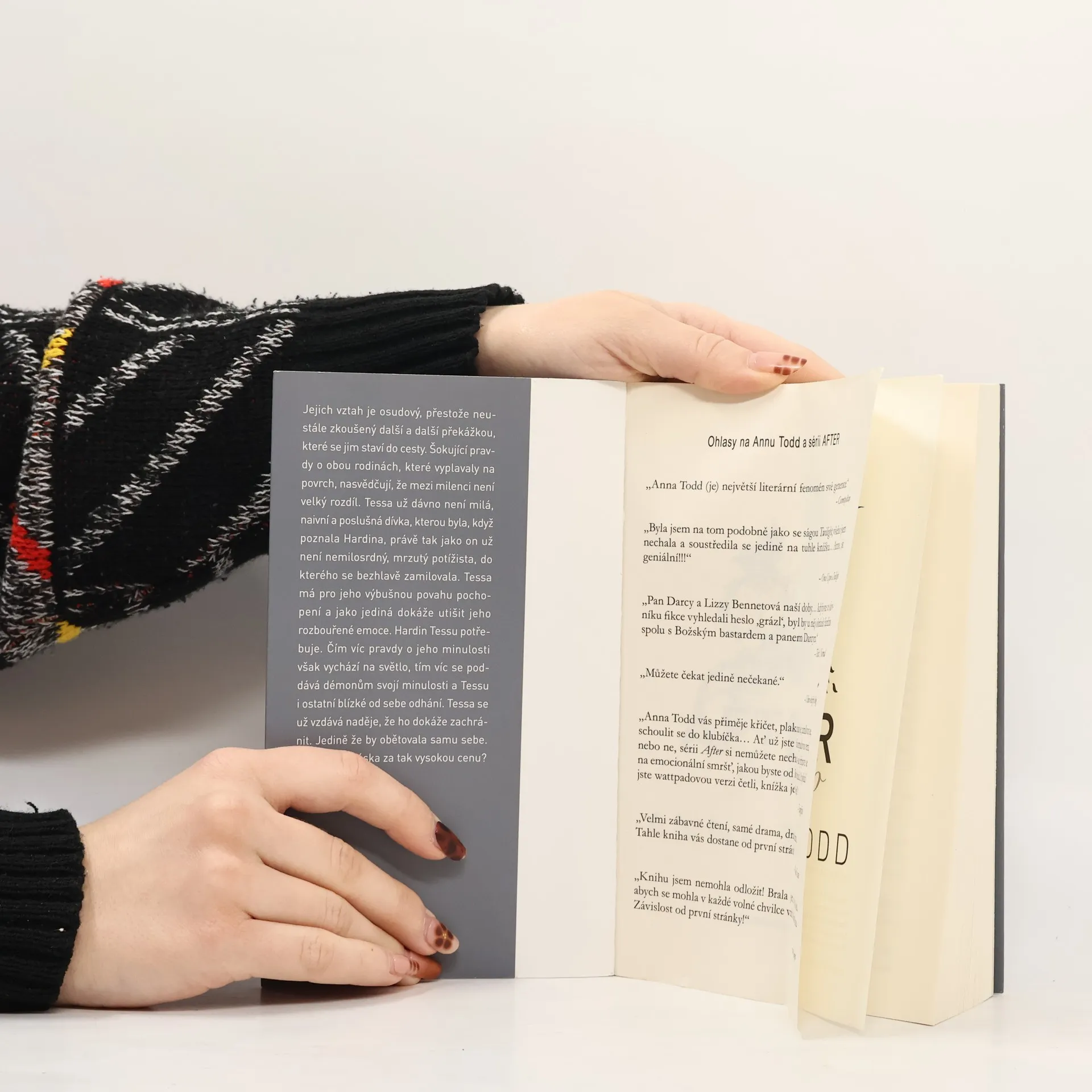 Život Tessy a Hardina je plný překvapení. Jejich vztah je osudový, přestože neustále zkoušený další a další překážkou, které se jim staví do cesty. Šokující pravdy o obou rodinách, které vyplavaly na povrch, nasvědčují, že mezi milenci není velký rozdíl. Tessa už dávno není milá, naivní a poslušná dívka, kterou byla, když poznala Hardina, právě tak jako on už není nemilosrdný, mrzutý potížista, do kterého se bezhlavě zamilovala. Tessa má pro jeho výbušnou povahu pochopení a jako jediná dokáže utišit jeho rozbouřené emoce. Hardin Tessu potřebuje. Čím víc pravdy o jeho minulosti však vychází na světlo, tím víc se poddává démonům svojí minulosti a Tessu i ostatní blízké od sebe odhání. Tessa se už vzdává naděje, že ho dokáže zachránit. Jedině že by obětovala samu sebe. Stojí jí však láska za tak vysokou cenu? Tessa se odmítá vzdát bez boje. Za koho však ve skutečnosti bojuje? Za Hardina, anebo za sebe samu? Čtvrtá kniha z úspěšné série AFTER, která se stala literárním fenoménem všech dob a dočkala se více než miliardy přečtení online.
