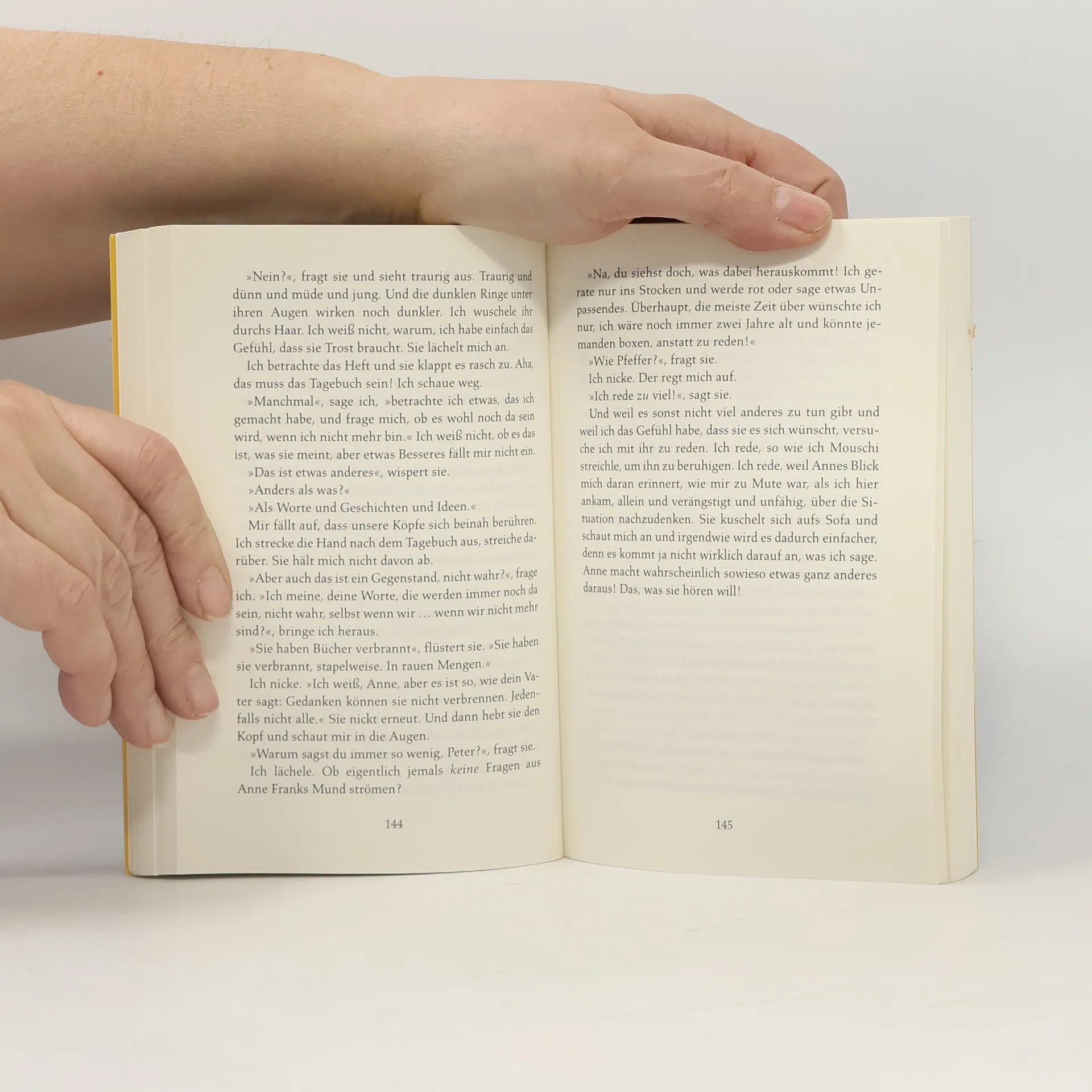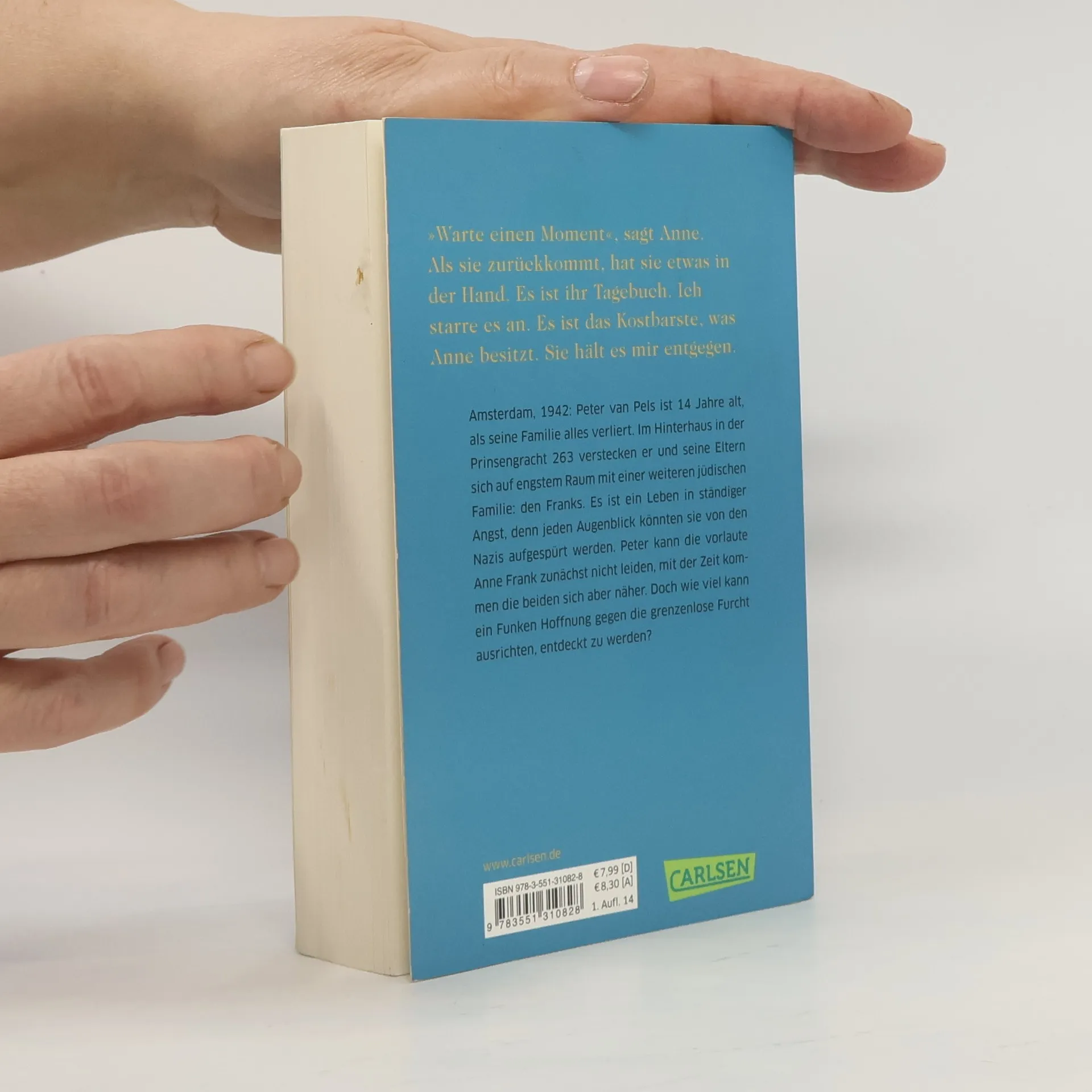Amsterdam, 1942: Peter van Pels ist 14 Jahre alt, als seine Familie alles verliert. Im Hinterhaus in der Prinsengracht 263 verstecken er und seine Eltern sich auf engstem Raum mit einer weiteren jüdischen Familie: den Franks. Es ist ein Leben in ständiger Angst, denn jeden Augenblick könnten sie von den Nazis aufgespürt werden. Peter kann die vorlaute Anne Frank zunächst nicht leiden, mit der Zeit verliebt er sich jedoch in sie. Über zwei Jahre lang bleiben sie unentdeckt, doch dann werden sie verraten…