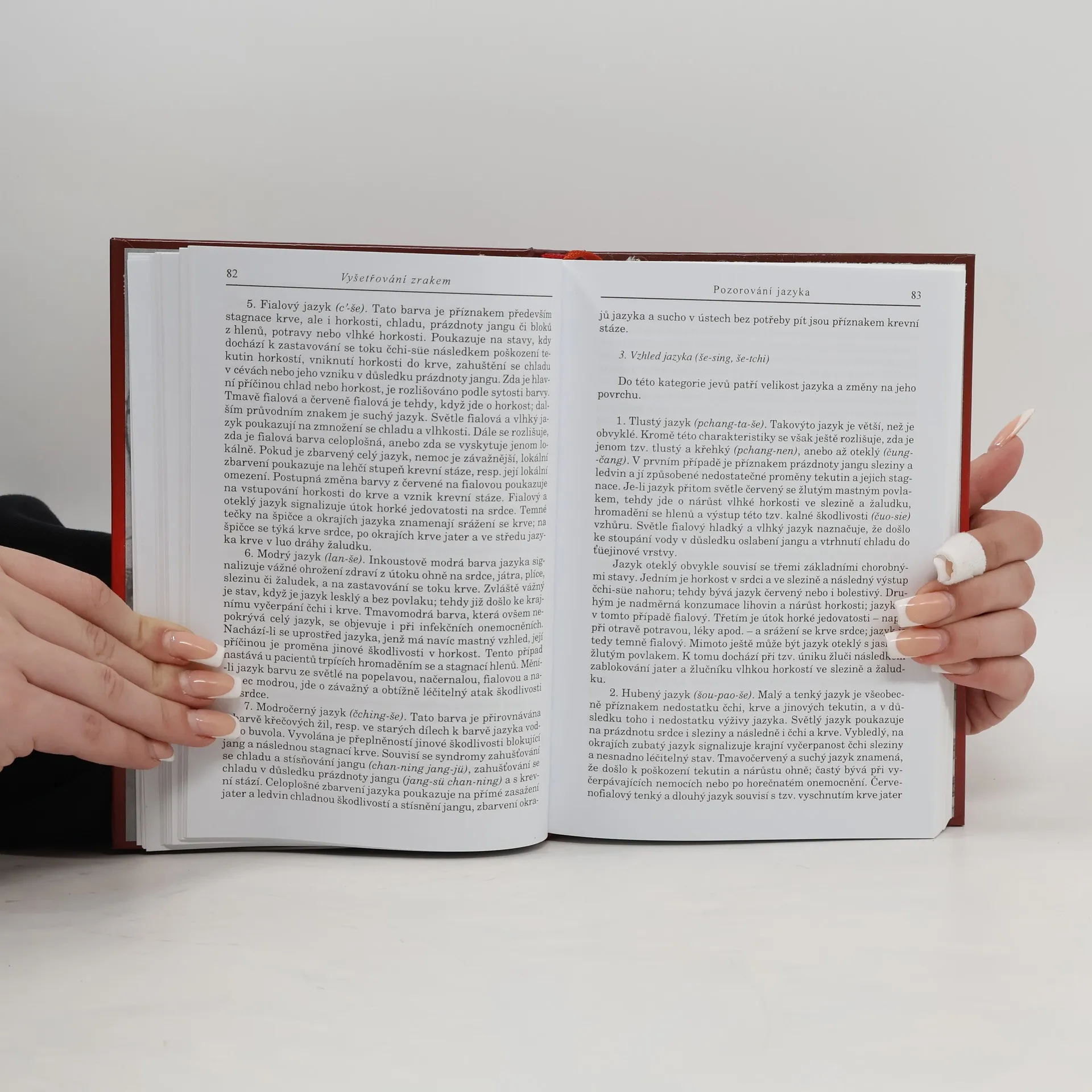 Čtvrtý díl cyklu o čínské medicíně se zaměřuje na metody vyšetřování. Obsahuje techniky vyšetření zrakem, čichem, dotazy a pohmatem. KAPITOLA VIII – METODY VYŠETŘOVÁNÍ zahrnuje: - **Vyšetřování zrakem**: Pozorování ducha šen, jeho stavy a poruchy, emoční poruchy, barvy obličeje a jejich vztah k cang-fu, zdravý a chorobný vzhled, a pozorování jednotlivých částí těla včetně hlavy, očí, nosu, úst, zubů, hrdla, hrudníku, břicha, zad, končetin a pokožky. Dále se zaměřuje na jazyk a jeho povlak, výměšky, hleny, sliny, zvratky, stolici a moč. - **Vyšetřování sluchem a čichem**: Naslouchání hlasu, řeči, dýchání, kašli, kýchání a dalším tělesným zvukům. - **Vyšetřování dotazy**: Zahrnuje otázky o teplotě, pocení, bolesti, a specifické dotazy na jednotlivé části těla, jako jsou hlava, hrdlo, hrudník, břicho a končetiny. Dále se dotazuje na trávení, spánek a vyměšování. - **Vyšetřování pohmatem**: Zahrnuje pohmat pulzu, jeho zdravé a chorobné varianty, a pohmat těla, včetně končetin a hrudníku. DODATKY obsahují rejstřík čínských slov.