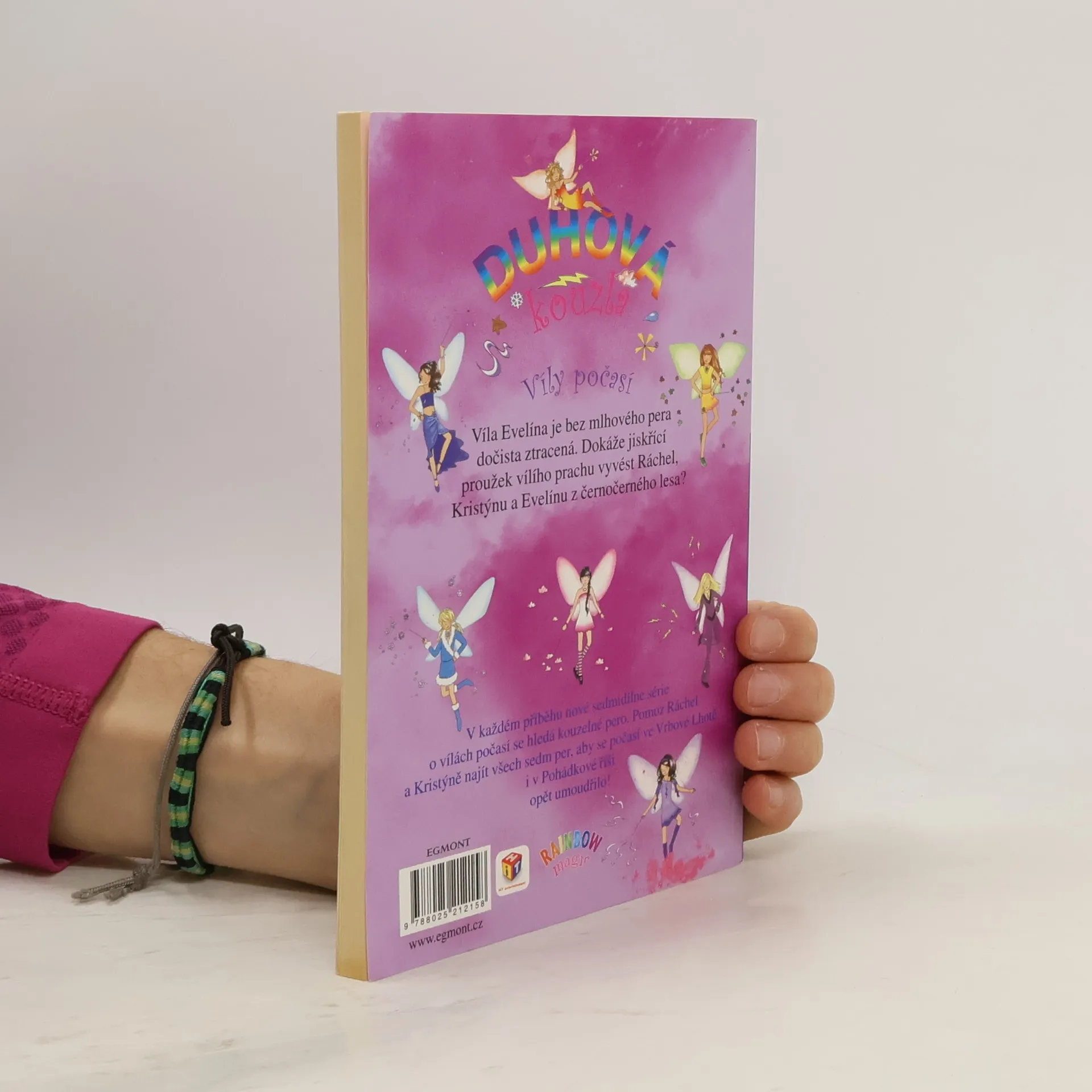 Víla Evelýna je bez mlhového pera dočista ztracená. Dokáže jiskřící proužek vílího prachu vyvést Ráchel, Kristýnu a vystrašenou Evelýnu z černočerného lesa? Tak jako je sedm barev duhy, je i sedm druhů počasí a každé z nich ovládá jedna víla pomocí kouzelného pera z ocasu kohouta Kokrháče. V každém příběhu nové sedmidílné série Duhová kouzla musí Ráchel a Kristýna jedno takové pero hledat. Pomoz jim najít všech sedm per, aby se počasí ve Vrbové Lhotě i v Pohádkové říši opět umoudřilo!