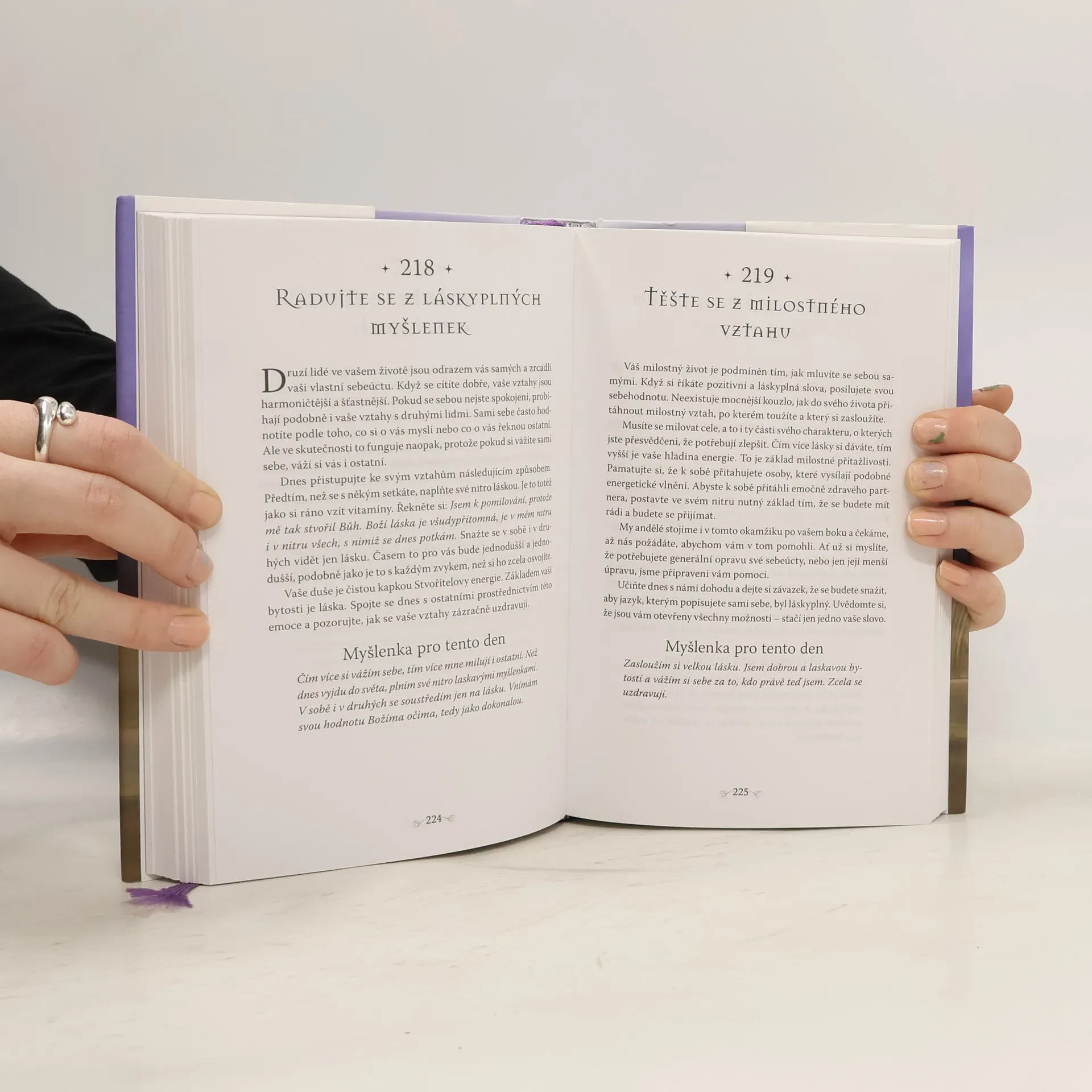 S podtitulem: 365 Andělských poselství, která uklidní, uzdraví a otevřou vaše srdce. Tato kniha vznikla proto, aby vám pomohla zůstat během dne ve stavu vnitřního míru a klidu. A také proto, abyste nezapomínali, že vaši andělé jsou vám neustále po boku, kdykoli ochotni vám pomoci, s čímkoli bude třeba. Začněte každé své ráno tím, že se spojíte s láskyplnou energií vašich andělů strážných pomocí jedné z meditací, které mi pro tuto knihu nadiktovali. Každá stránka této knihy vám přináší vzkaz, který vám bude útěchou i povzbuzením, a pomůže vám den začít s pozitivní energií. Tuto jedinečnou knihu můžete také používat jako věštecký nástroj. Položte jednoduše svou otázku a knihu namátkou otevřete. Strana, na které jste knihu otevřeli, vám přinese odpověď.