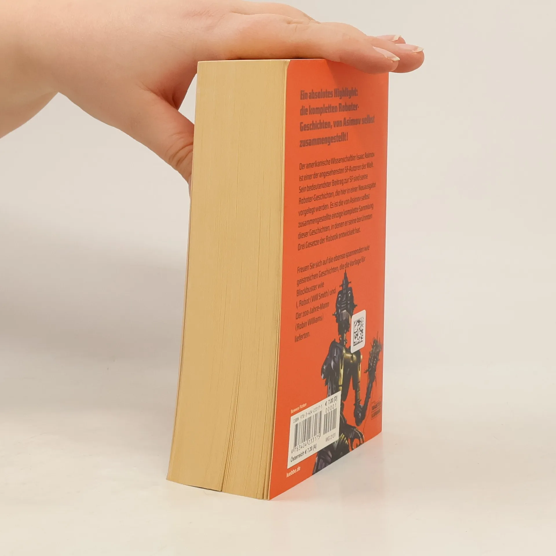 Der amerikanische Wissenschaftler Isaac Asimov ist einer der angesehensten SF-Autoren der Welt. Sein bedeutendster Beitrag zur SF sind seine Roboter-Geschichten, die hier in einer Neuausgabe vorgelegt werden. Es ist die von Asimov selbst zusammengestellte einzige komplette Sammlung dieser Geschichten, in denen er seine berühmten Drei Gesetze der Robotik entwickelt hat. Freuen Sie sich auf die ebenso spannenden wie geistreichen Geschichten, die die Vorlage für Blockbuster wie I, Robot (Will Smith) und Der 200-Jahre-Mann (Robin Williams) lieferten.