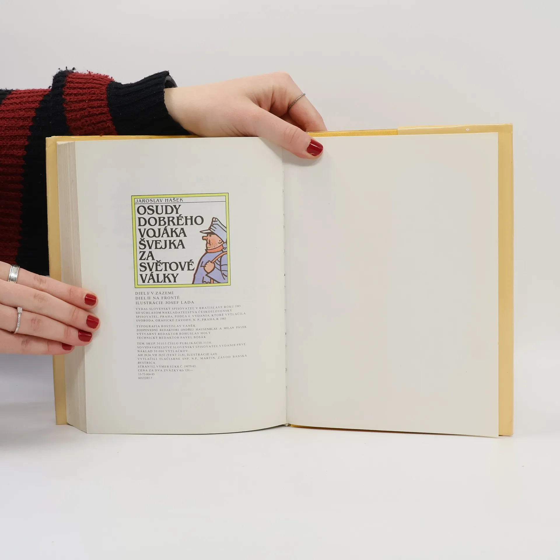 Vydáno k 100. výročí narození Jaroslava Haška. Díl první: V zázemí (1921) – Díl druhý: Na frontě (1922). Dobrý voják Švejk je jedna z nejznámějších a nejoblíbenějších postav nejen české, ale i světové literatury. Svědčí o tom spolu s četnými vydáními doma a v zahraničí také skutečnost, že se z díla stala v pravém slova smyslu klasika, která se neustále čte a cituje. Možná bychom mohli mluvit i o součásti naší národní povahy, ať už v dobrém nebo pejorativním smyslu. Švejk, hostinský Palivec, polní kurát Katz, nadporučík Lukáš, sapér Vodička, Baloun a další postavičky nadále žijí svým životem.