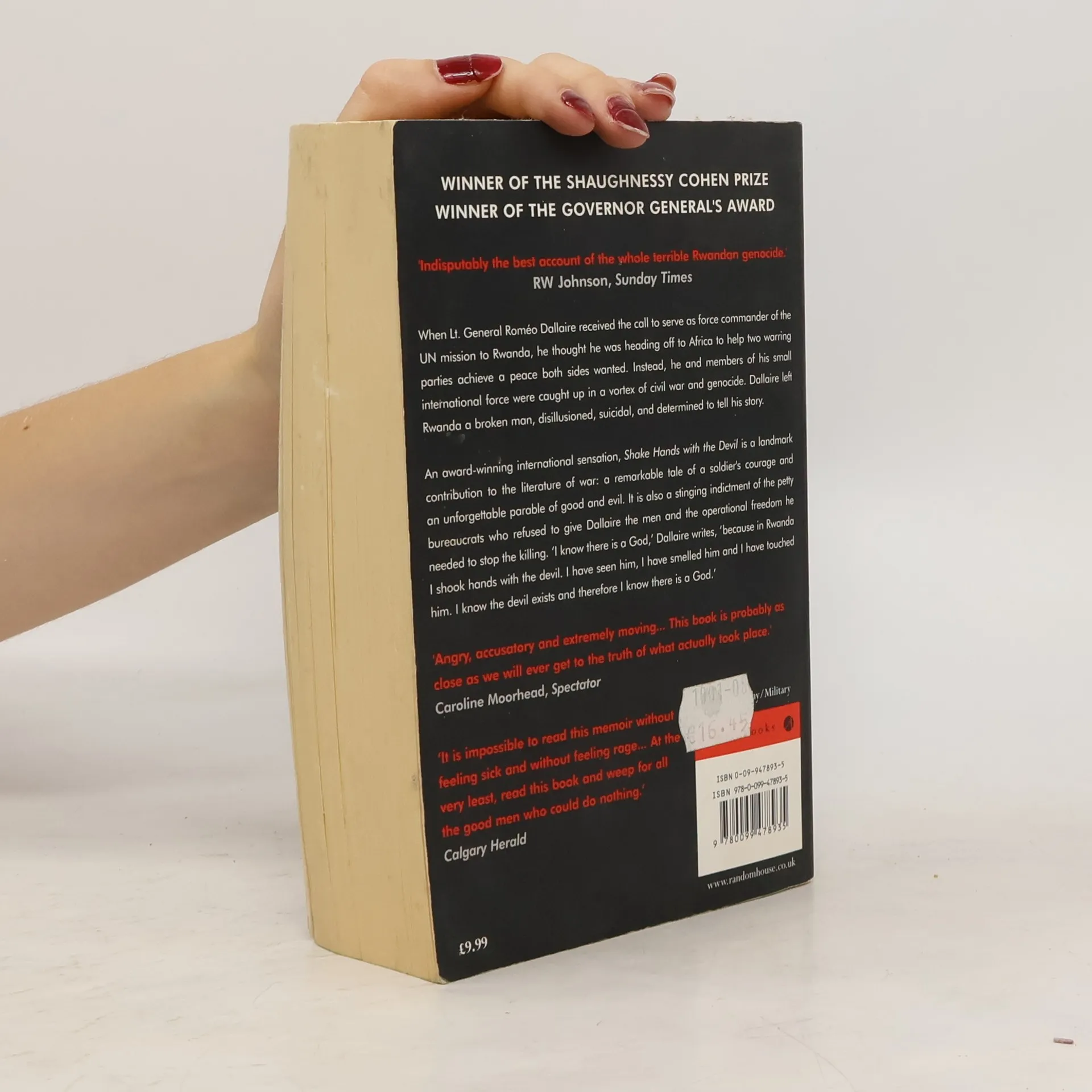 Thirteen months after Lt-Gen Romeo went to serve as force commander of the UN intervention in Rwanda in 1993, he flew home broken, disillusioned and suicidal, having witnessed the slaughter of 800,000 Rwandans. This book takes us on a return voyage into the hell of Rwanda, recreating the events the international community turned its back on.