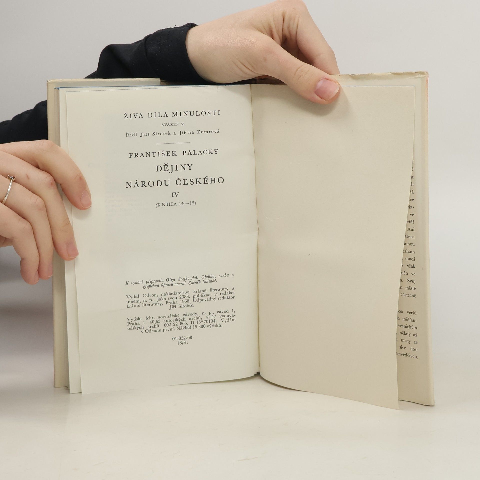 Nové vydání monumentálního díla české historiografie, v němž Palacký na podkladě průzkumu českých a zahraničních archívů a velkého bohatství poznatků a jejich kritického rozboru podal ucelený výklad české minulosti od počátkuaž do roku 1526. Jeho význam a přínos nezáleží pouze vtom, že vyvracelo omyly starší historiografie, nýbrž že použitím vývojových filosoficko-dějinných hledisek bylo prvním syntetickým zpracováním českých dějin. Palackého Dějiny, jejichž česká verze vycházela v letech 1848-1876, zůstanou proto "působivým národním eposem, vynikajícím ryzostí jazyka a ušlechtilostí stylu, a klasickým dílem české literatury minulého století". Tento díl obsahuje popis let 1439-1471.
