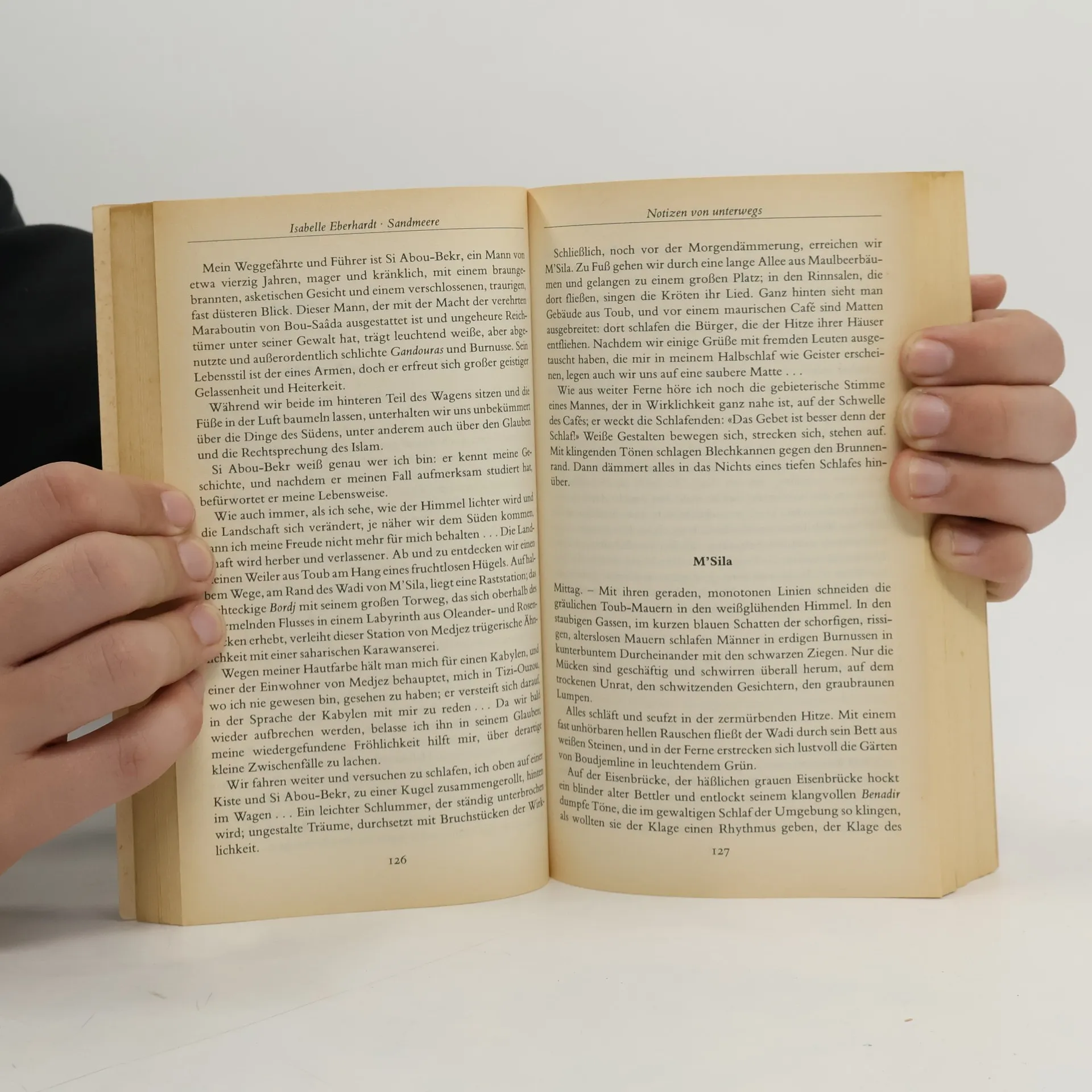 „Ein Abenteuerroman und eine Wüstensinfonie.“ (Vogue) Als Mann verkleidet erkundet eine unerschrockene Frau die arabische Welt. Isabelle Eberhardt bereist um 1900 Nordafrika und setzt sich den Bordellen der Hafenviertel ebenso aus wie der erhabene Stille der Wüste. Ihre Erlebnisse fängt sie in Reportagen und Kurzgeschichten ein, schafft Stimmungsbilder von großer Dichte, erfüllt von Farbe und Sinnlichkeit. „Diese Texte haben den Rhythmus einer Sahara-Karawane. Wer sich einlässt auf ihren Zauber, verfällt der Schönheit und Melancholie der Wüste und fühlt den Pulsschlag des Nomadenlebens.“ (NDR)