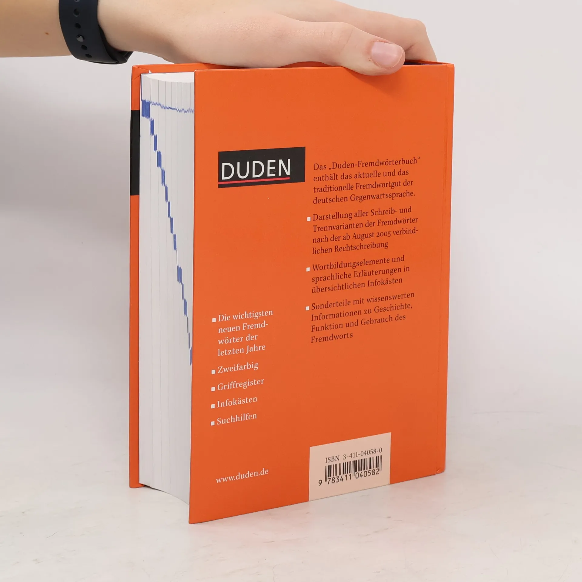 Für jeden, der Fremdwörter in der deutschen Sprache richtig schreiben, genau verstehen und korrekt gebrauchen will. 55.000 aktuelle und traditionelle Fremd- und Fachwörter der deutschen Gegenwartssprache. Mit Suchhilfen für Stichwörter, deren Schreibweise unsicher ist. Auf der Grundlage der seit dem 1.8.2006 verbindlichen amtlichen Rechtschreibregeln.