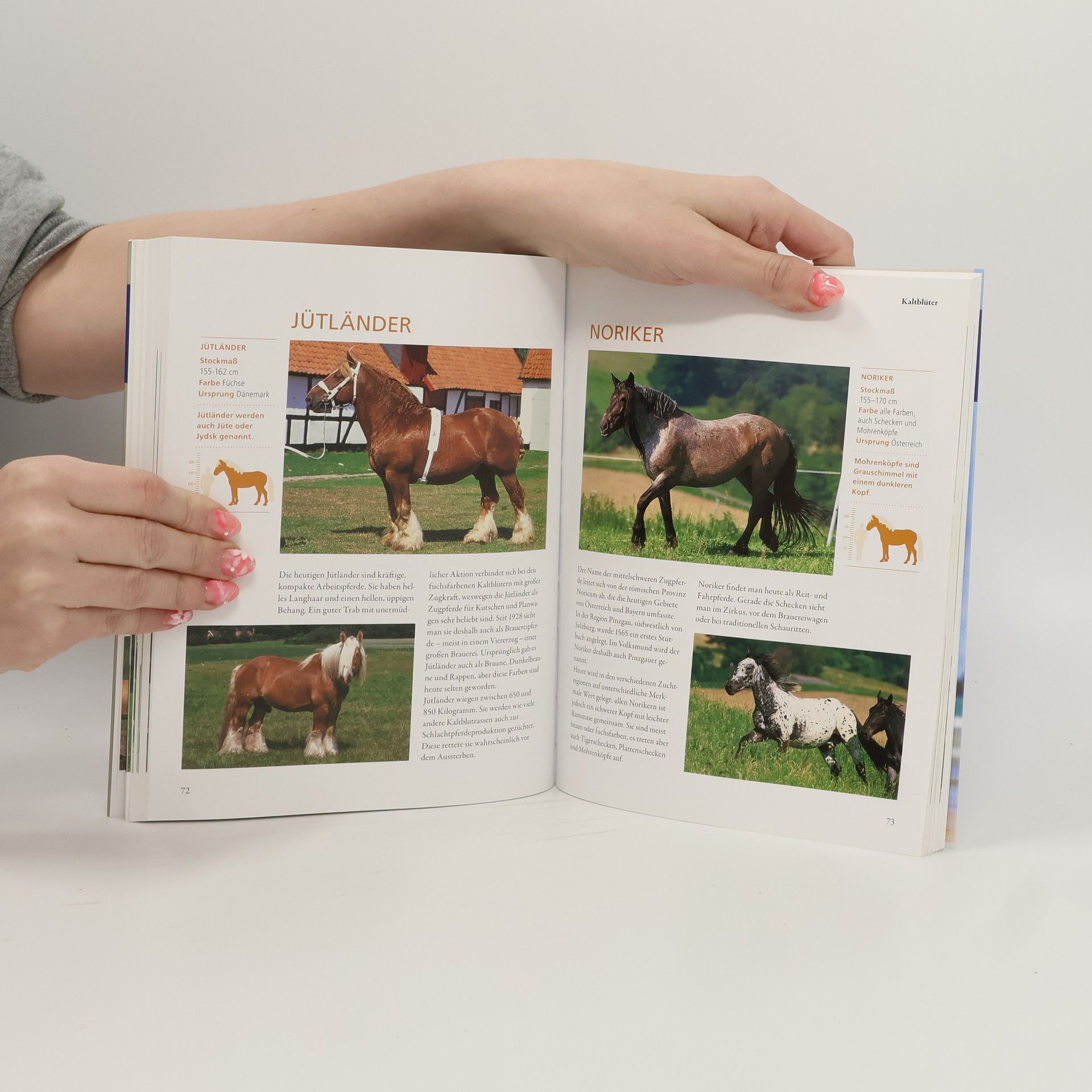 Vom Shetland Pony bis zum Shire Horse, vom Hannoveraner bis zum Andalusier – dieses kompakte Nachschlagewerk informiert kompetent über die bekanntesten und beliebtesten Pferderassen aus aller Welt. Kurzporträts mit rassetypischen Fotos und Größenskala geben einen schnellen Überblick über Herkunft, Haltung und Eignung der einzelnen Rassen. So findet jeder Reiter das Pferd, das zu ihm und seinen persönlichen Vorlieben passt.