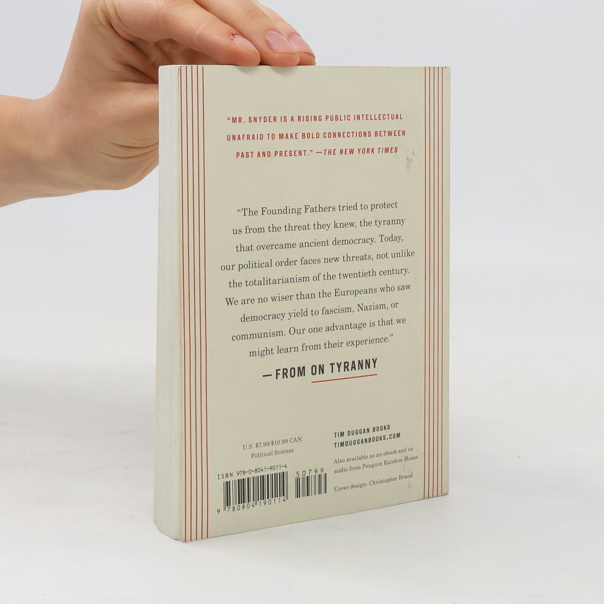 #1 NEW YORK TIMES BESTSELLER • A “bracing” (Vox) guide for surviving and resisting America’s turn towards authoritarianism, from “a rising public intellectual unafraid to make bold connections between past and present” (The New York Times) “Timothy Snyder reasons with unparalleled clarity, throwing the past and future into sharp relief. He has written the rare kind of book that can be read in one sitting but will keep you coming back to help regain your bearings.”—Masha Gessen The Founding Fathers tried to protect us from the threat they knew, the tyranny that overcame ancient democracy. Today, our political order faces new threats, not unlike the totalitarianism of the twentieth century. We are no wiser than the Europeans who saw democracy yield to fascism, Nazism, or communism. Our one advantage is that we might learn from their experience. On Tyranny is a call to arms and a guide to resistance, with invaluable ideas for how we can preserve our freedoms in the uncertain years to come.