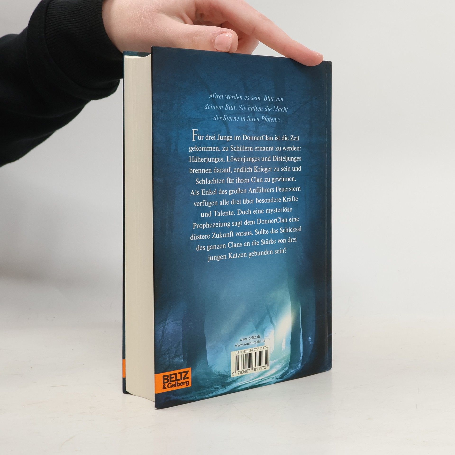 »Drei werden es sein, Blut von deinem Blut. Sie halten die Macht der Sterne in ihren Pfoten.« Für drei Junge im DonnerClan ist die Zeit gekommen, zu Schülern ernannt zu werden: Häherpfote, Löwenpfote und Distelpfote brennen darauf, endlich Krieger zu sein und Schlachten für ihren Clan zu gewinnen. Als Enkel des großen Anführers Feuerstern verfügen alle drei über besondere Kräfte und Talente. Doch eine mysteriöse Prophezeiung sagt ihnen und dem DonnerClan eine düstere Zukunft voraus. Sollte das Schicksal des ganzen Clans wirklich an die Stärke von drei jungen Katzen gebunden sein? Und wie werden die Geschwister mit dieser Last umgehen?