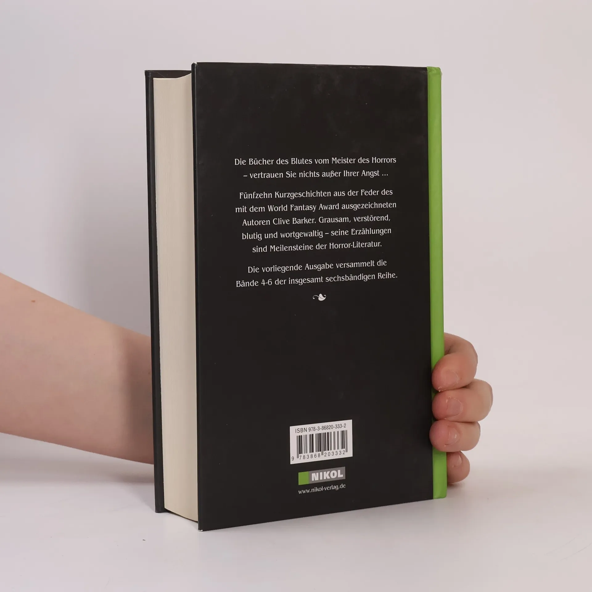 Die Bücher des Blutes vom Meister des Horrors – vertrauen Sie nichts außer Ihrer Angst … Sechzehn Kurzgeschichten aus der Feder des mit dem World Fantasy Award ausgezeichneten Autoren Clive Barker. Grausam, verstörend, blutig und wortgewaltig – seine Erzählungen sind Meilensteine der Horror-Literatur. Die vorliegende Ausgabe versammelt die Bände 4-6 der sechsbändigen Reihe.