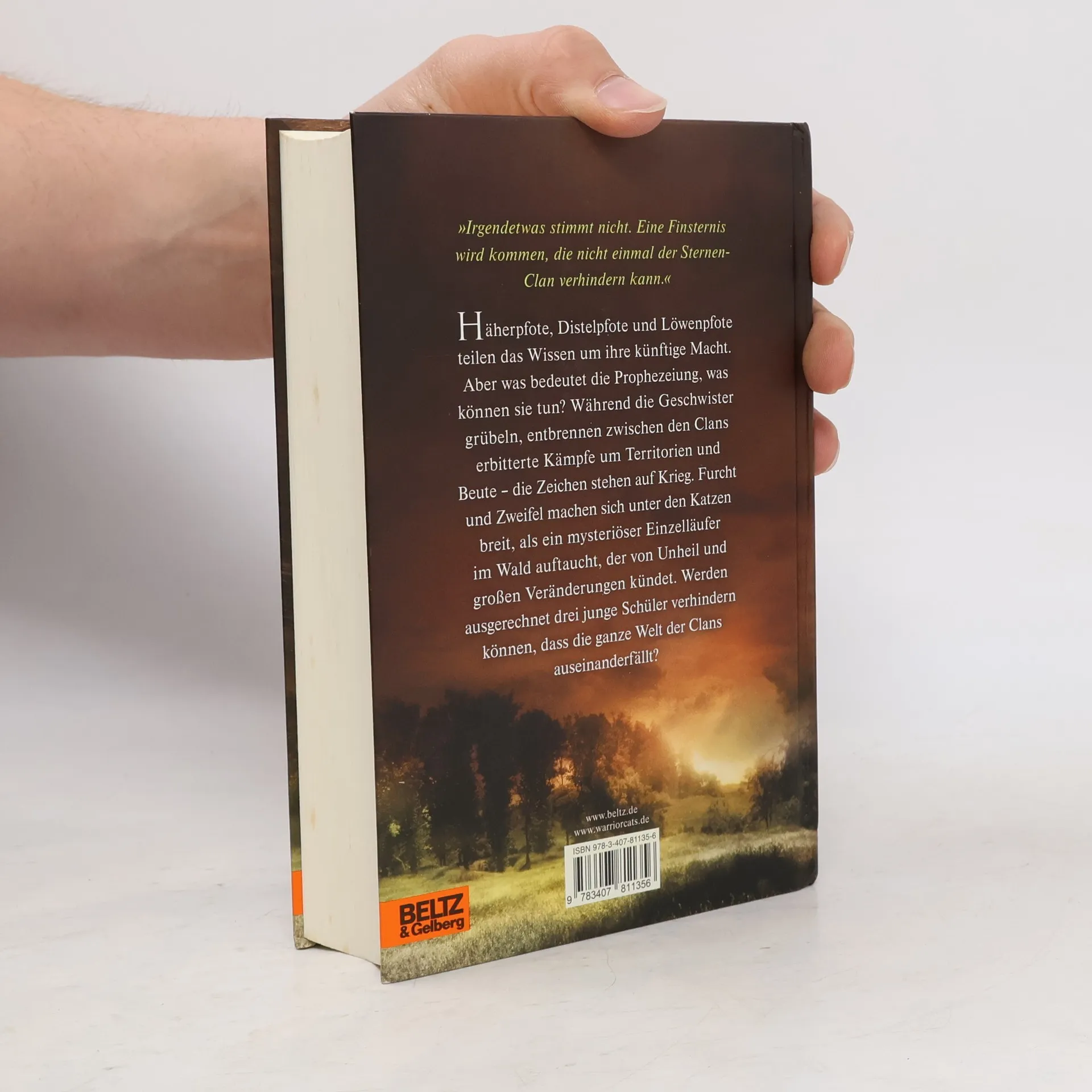 'Irgendetwas stimmt nicht. Eine Finsternis wird kommen, die nicht einmal der SternenClan verhindern kann. Und wenn sie kommt, werden wir nichts tun können, um die Clans zu schützen.' Häherpfote, Distelpfote und Löwenpfote teilen das Wissen um ihre künftige Macht. Aber was bedeutet die Prophezeiung, was können sie tun? Während die Geschwister grübeln, entbrennen zwischen den Clans erbitterte Kämpfe um Territorien und Beute - die Zeichen stehen auf Krieg. Furcht und Zweifel machen sich unter den Katzen breit, als ein mysteriöser Einzelläufer im Wald auftaucht, der von Unheil und großen Veränderungen kündet. Plötzlich scheint nicht einmal das Gesetz der Krieger mehr sicher. Werden ausgerechnet drei junge Schüler verhindern können, dass die ganze Welt der Clans auseinanderfällt?