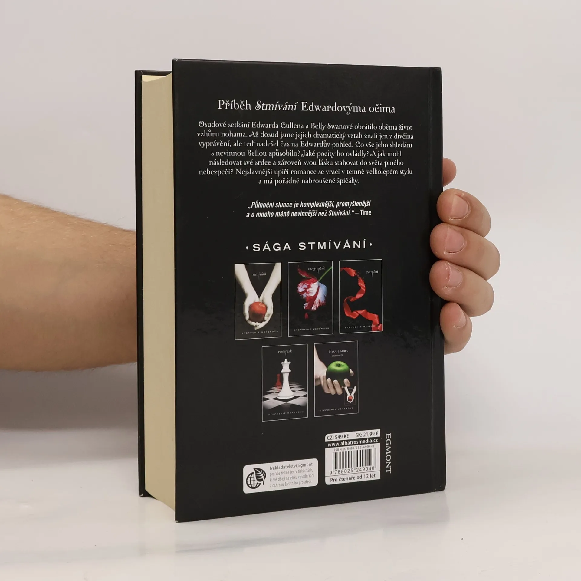 Příběh Stmívání Edwardovýma očima. Osudové setkání Edwarda Cullena a Belly Swanové obrátilo oběma život vzhůru nohama. Až dosud jsme jejich dramatický vztah znali jen z dívčina vyprávění, ale teď nadešel čas na Edwardův pohled. Co vše jeho shledání s nevinnou Bellou způsobilo? Jaké pocity ho ovládly? A jak mohl následovat své srdce a zároveň svou lásku stahovat do světa plného nebezpečí? Nejslavnější upíří romance se vrací v temně velkolepém stylu a má pořádně nabroušené špičáky.