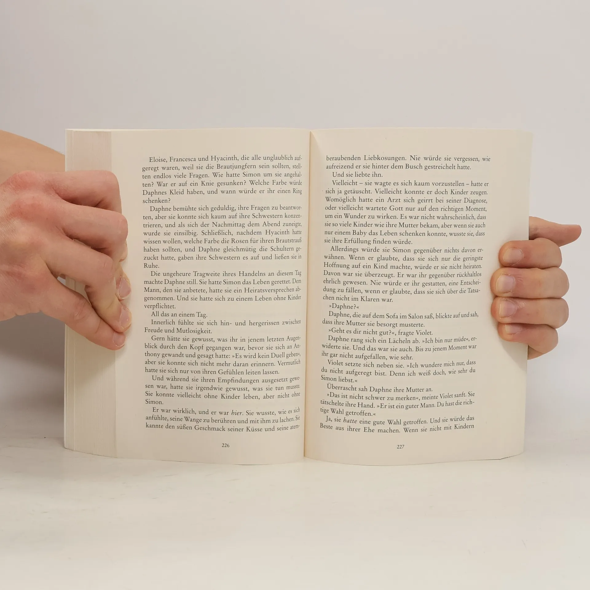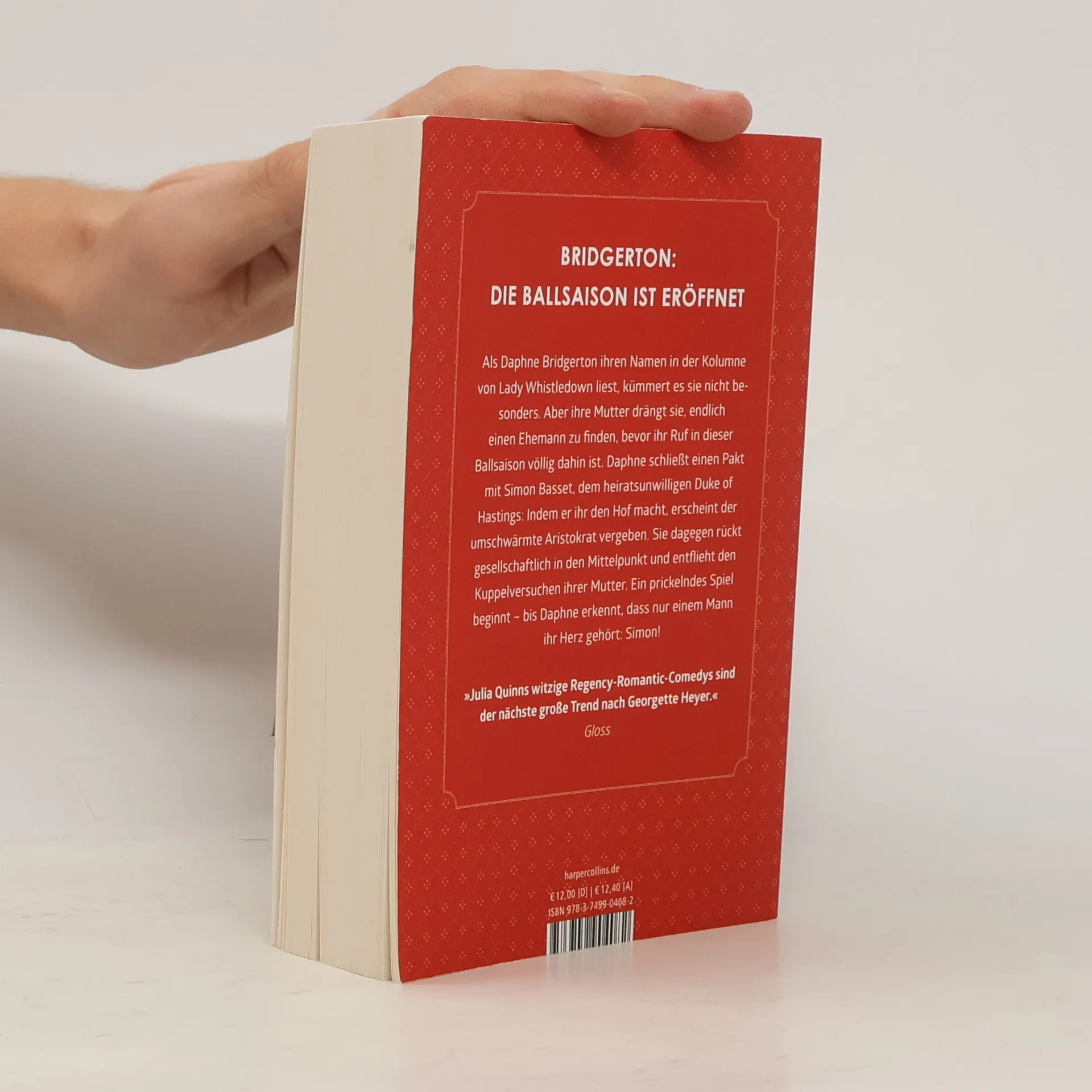 Bridgerton: Die Inspiration zur Netflix-Serie Die ganze Geschichte von Daphne und Simon – jetzt mit zusätzlichem Epilog Als Daphne Bridgerton ihren Namen in der Kolumne von Lady Whistledown liest, kümmert es sie nicht besonders. Aber ihre Mutter drängt sie, endlich einen Ehemann zu finden, bevor ihr Ruf in dieser Ballsaison völlig dahin ist. Daphne schließt einen Pakt mit Simon Basset, dem heiratsunwilligen Duke of Hastings: Indem er ihr den Hof macht, erscheint der umschwärmte Aristokrat vergeben. Sie dagegen rückt gesellschaftlich in den Mittelpunkt und entflieht den Kuppelversuchen ihrer Mutter. Ein prickelndes Spiel beginnt – bis Daphne erkennt, dass nur einem Mann ihr Herz gehört: Simon! »Julia Quinns witzige Regency-Romantic-Comedys sind der nächste große Trend nach Georgette Heyer.« Gloss »Wahrhaft die Jane Austen der Gegenwart.« Bestsellerautorin Jill Barnett