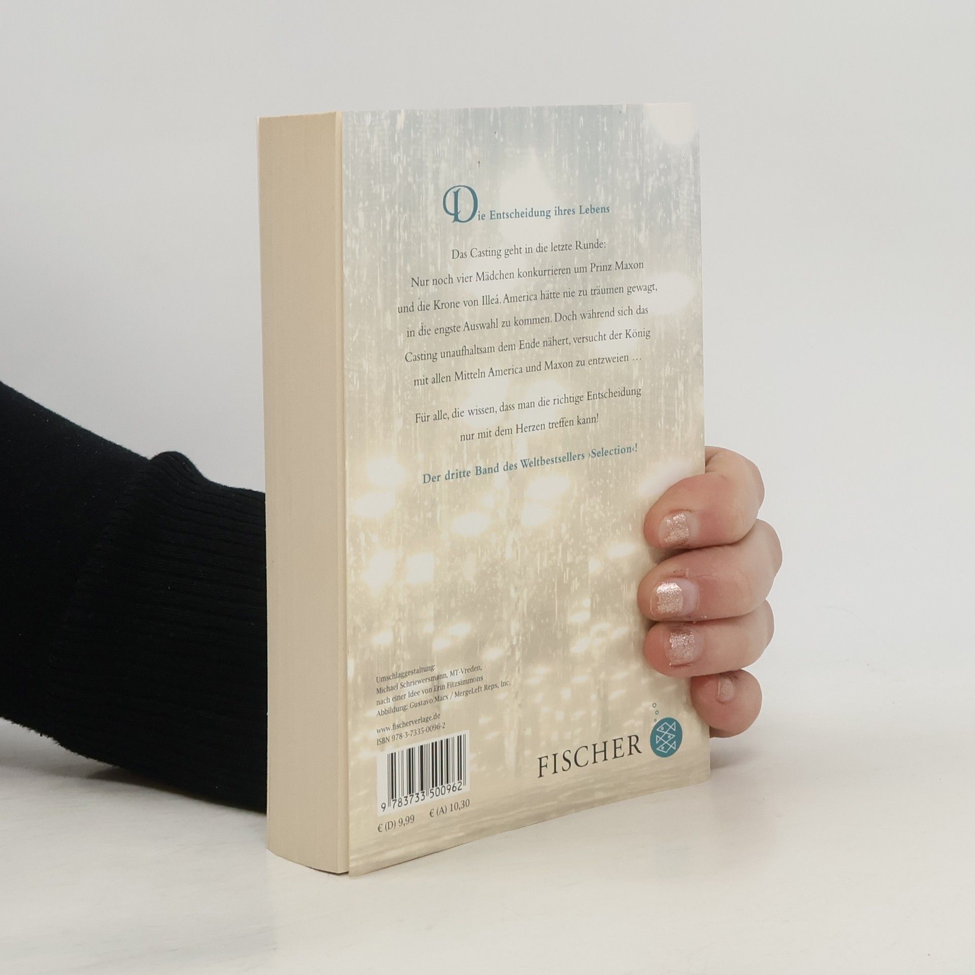 Der dritte Band des Weltbestsellers ›Selection‹ im Taschenbuch 35 perfekte Mädchen waren angetreten. Nun geht das Casting in die letzte Runde: Vier Mädchen träumen von der Krone Illeás und einer Märchenhochzeit. America ist noch immer die Favoritin von Prinz Maxon,doch auch ihre Jugendliebe Aspen umwirbt sie noch immer heftig. Sie zögert, denn sie liebt beide. Doch jetzt ist der Moment der Entscheidung gekommen: America hat ihr Herz vergeben, mit allen Konsequenzen. Komme, was wolle … Fortsetzung der romantischen ›Selection‹-Serie für Mädchen ab 14! Monatelang auf der Spiegel-Beststellerliste