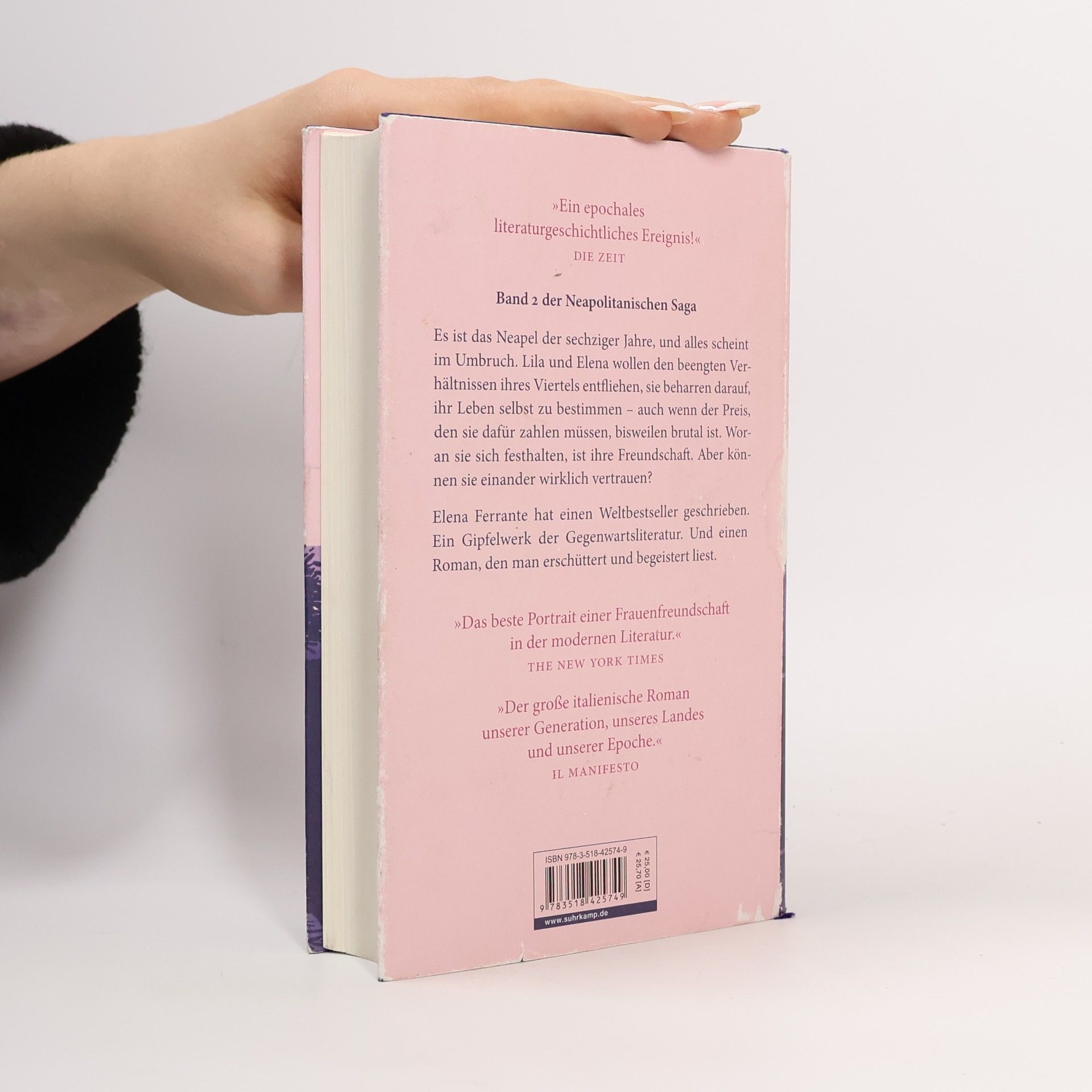 Lila und Elena sind sechzehn Jahre alt, und sie sind verzweifelt. Lila hat noch am Tage ihrer Hochzeit erfahren, dass ihr Mann sie hintergeht – er macht Geschäfte mit den allseits verhassten Solara-Brüdern, den lokalen Camorristi. Für Lila, arm geboren und durch die Ehe schlagartig zu Geld und Ansehen gekommen, brechen leidvolle Zeiten an. Elena hingegen verliebt sich Hals über Kopf in einen jungen Studenten, doch der scheint nur mit ihren Gefühlen zu spielen. Sie ist eine regelrechte Vorzeigeschülerin geworden, muss aber feststellen, dass das, was sie sich mühsam erarbeitet hat, in ihrer neapolitanischen Welt kaum etwas gilt. Trotz all dieser Widrigkeiten beharren Lila und Elena immer weiter darauf, ihr Leben selbst zu bestimmen, auch wenn der Preis, den sie dafür zahlen müssen, bisweilen brutal ist. Woran die beiden jungen Frauen sich festhalten, ist ihre Freundschaft. Aber können sie einander wirklich vertrauen? Elena Ferrante hat einen Weltbestseller geschrieben. Ein Gipfelwerk der zeitgenössischen Literatur. Und einen Roman, den man erschüttert und begeistert liest!