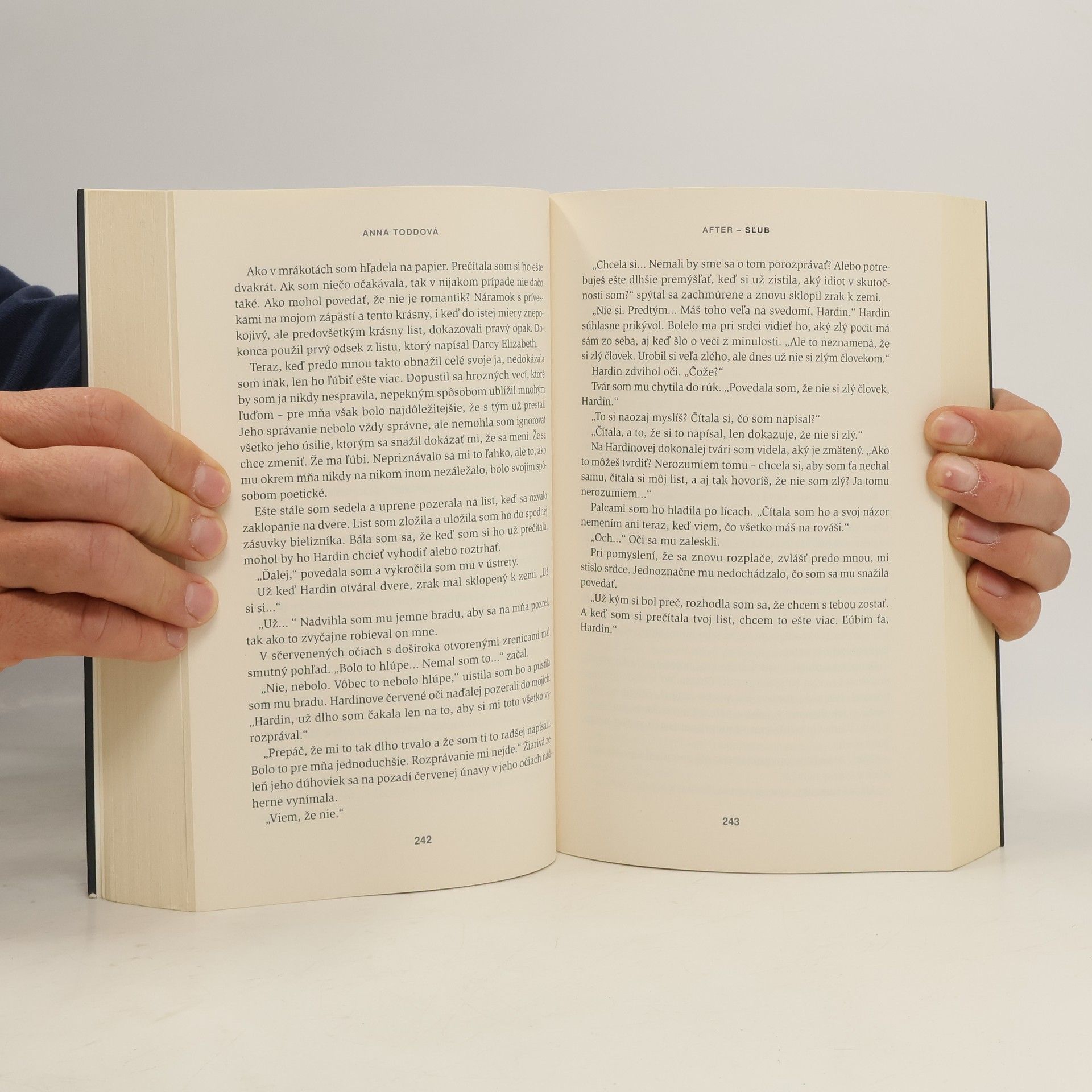 Tessa sa dozvedá krutú pravdu o začiatkoch jej vzťahu s Hardinom. Už neraz sa presvedčila, že chlapec, ktorého miluje, býva krutý, ale také poníženie nečakala ani v najhoršom sne. Musí sa zmieriť s tým, že Hardin navždy ostane...Hardinom. Že by sa v ňom až tak veľmi mýlila? Rozum aj blízki jej radia, aby dala od Hardina ruky preč, nebola by prvá, ktorú potupil a odkopol. Kvôli Hardinovi odstavila na vedľajšiu koľaj všetko, na čom jej záležalo – školu, kamarátov, mamu, priateľa... ďalšie sklamanie by nezvládla. Mala by sa zachovať rozumne a vykašľať sa naňho, skôr než sa popáli ešte viac. No ľahko sa povie, ťažšie spraví, najmä pri pomyslení na vášnivé noci strávené v jeho náručí. Elektrizujúce dotyky. Nenásytné bozky. Hardin sa pred ňou kajá, vie, že sa dopustil najhoršej chyby v živote. Dokáže sa však naozaj zmeniť? Tessu čaká jedno z najťažších rozhodnutí.