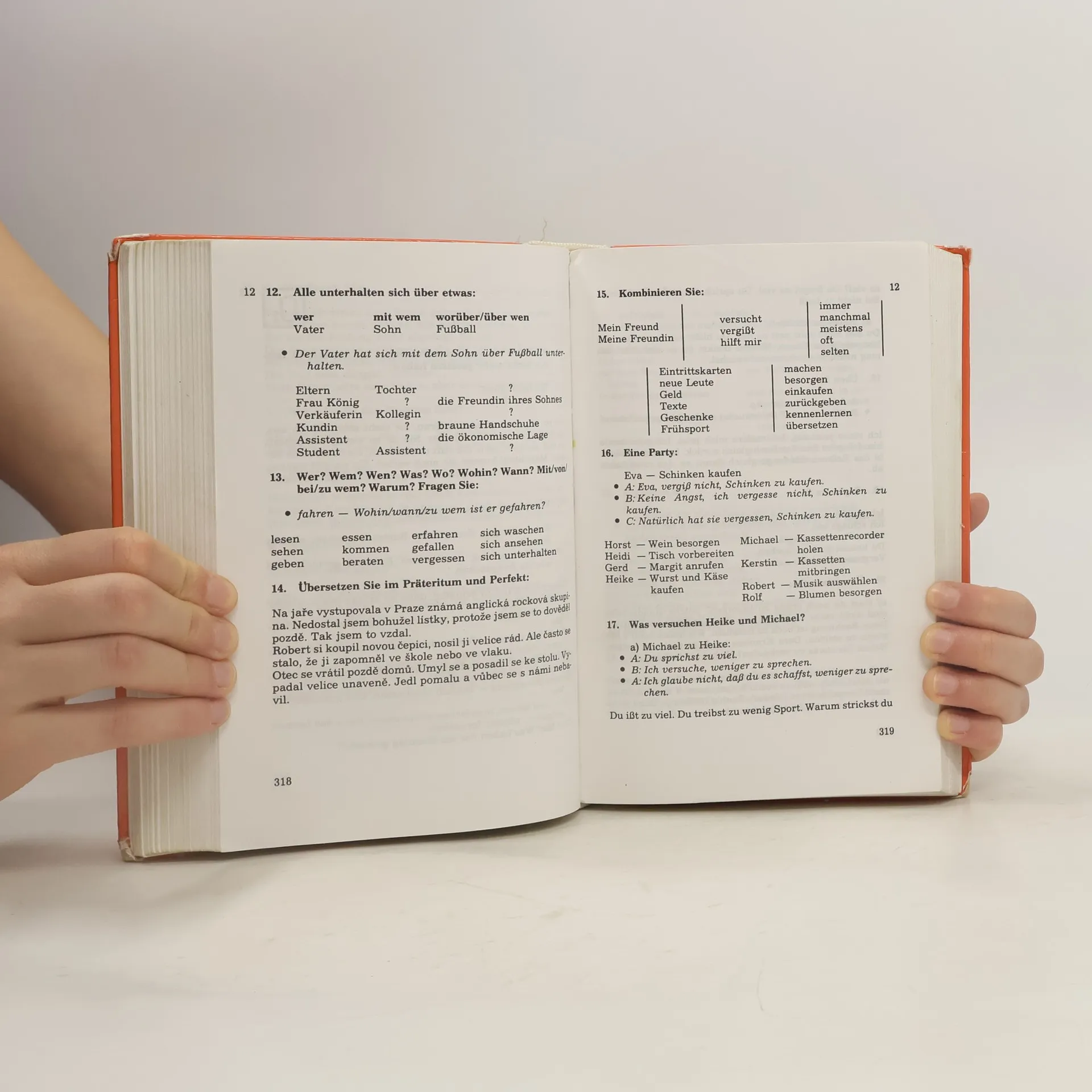 Učebnice je zaměřená na komunikativní zvládnutí hovorového jazyka. Vede k získání zručností dorozumět se v základních životních situacích / představování se, na návštěvě, v obchodě, v restauraci, v hotelu, u lékaře, na poště atd. / poskytuje vhodný slovní materiál k nejčastějším tématům rozhovorů / rodina, bývání, volný čas, sport, hudba, cestovaní. Lekce: 1. Sind wir aber neugierig!, 2. Unsere Familie, 3. Zu Besuch, 4. Unsere Deutschstunde, 5. Guten Apetit!, Horst und Karin ziehen um, 7. Beim Artz, 8. Sport treiben oder einkaufen ?, 9. Ein Telefongespräch, 10. Eine Auslandsreise.