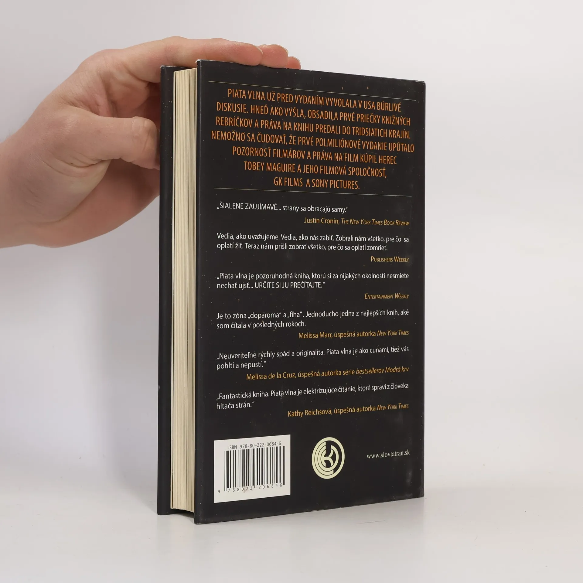 PO PRVEJ VLNE OSTALA LEN TMA. Po Druhej unikli len šťastlivci. A po Tretej sa zachránili iba nešťastníci. Po Štvrtej vlne platí jediné pravidlo: nikomu never.Teraz sa schyľuje k Piatej vlne a na osamotenom úseku autostrády sa pred nimi snaží uniknúť Cassie. Pred bytosťami, ktoré sa iba podobajú na ľudí, potulujú sa po krajine a zabíjajú všetko okolo seba. Pred bytosťami, ktoré rozprášili posledných obyvateľov Zeme. Až kým Cassie nestretne Evana Walkera, je presvedčená, že prežije, iba ak ostane sama. Očarujúci a záhadný Evan môže byť Cassiinou jedinou nádejou pri záchrane jej brata – ba dokonca jej samej. No Cassie si musí vybrať medzi nádejou a zúfalstvom, medzi vzdorom a porážkou, medzi životom a smrťou. Musí sa vzdať alebo postaviť na odpor.Piata vlna je pôsobivý príbeh plný prekvapení – sme uprostred chaotického sveta, ktorý sa nazýva Zem. Ľudstvo, hoci sa hrdinsky snaží vzdorovať mimozemšťanom, má mizivé šance na prežitie. Desivá, neošúchaná a skutočne výnimočná realita, s akou autor stvárnil príchod cudzích bytostí, pohltí každého čitateľa, takže knihu prečíta jedným dychom. Rick Yancey sa pohral so svojimi postavami a očividne ho to bavilo.
