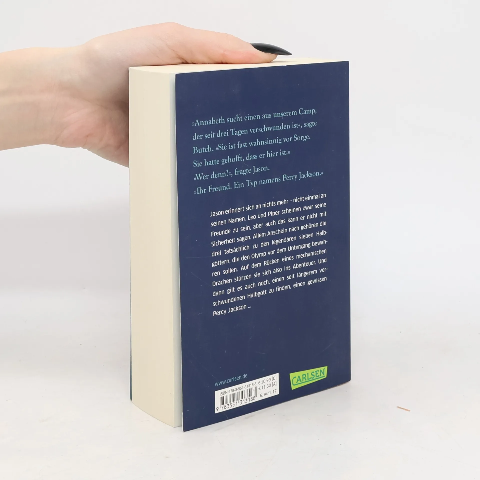 Sieben Teenager kämpfen gegen Riesen, Zyklopen und römische Götter. Als der 15-jährige Jason Grace in einem Schulbus aufwacht, hat er keine Erinnerungen – nicht an seine Freunde Piper und Leo, noch daran, dass er der Sohn des Jupiter und ein mächtiger Halbgott ist. Kaum Zeit zum Nachdenken bleibt, denn zusammen mit Piper und Leo wird er ins Camp Half-Blood gebracht, wo er seine Bestimmung erfährt: Laut Prophezeiung gehört er zu den sieben Halbgöttern, die den Olymp vor der Erdgöttin Gaia retten müssen. Mit einem mechanischen Drachen begeben sich die Freunde auf eine abenteuerliche Reise ins Ungewisse. Diese Geschichte ist die Fortsetzung der beliebten ‘Percy Jackson’-Serie. Nach Jasons Gedächtnisverlust überschlagen sich die Ereignisse: Als Sohn des Jupiter ist er Teil der legendären Halbgötter, die den Olymp gegen Gaia verteidigen sollen. Um erfolgreich zu sein, müssen sich die römischen und griechischen Halbgötter zusammenschließen. „Helden des Olymp“ ist eine fünfteilige Fantasy-Reihe, die die jugendlichen Halbgötter Jason, Piper, Leo, Percy, Annabeth, Hazel und Frank in den Mittelpunkt stellt. Der spannende Mix aus Action, Witz und Mythologie begeistert Leser jeden Alters. ***Griechische Götter in der Gegenwart: actionreich, wild und urkomisch – für Leser ab 12 Jahren und Fans der griechisch-römischen Mythologie.***