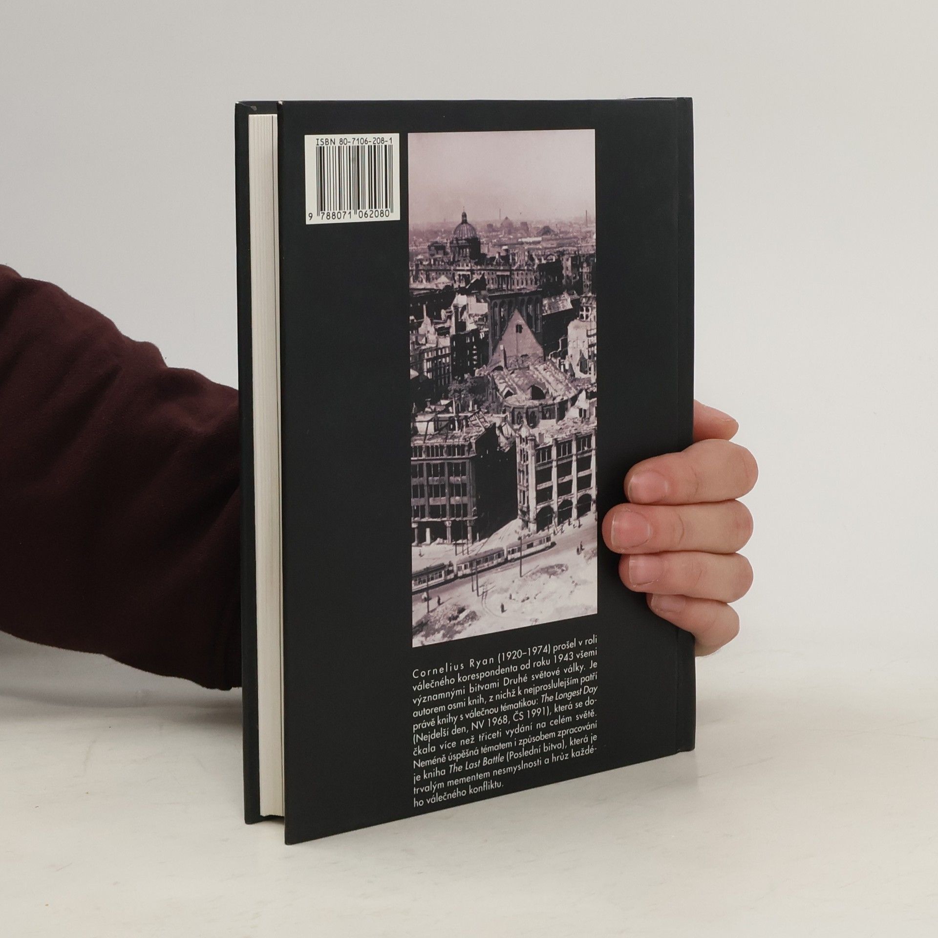 Cornelius Ryan (1920 - 1974) prošel v roli válečného korenspondenta od roku 1943 všemi významnými bitvami Druhé světové války. Je autorem osmi knih, z nichž k nejproslulejším patří právě knihy s válečnou tématikou: The Longest Day (Nejdelší den, NV 1968, ČS 1991), která sa dočkala více než třiceti vydání na celém světe. Neméně úspešná tématem i způsobem zpracování je kniha The Last Battle (Poslední bitva), která je trvalým mementem nesmyslnosti a hrůz každého válečného konfliktu.