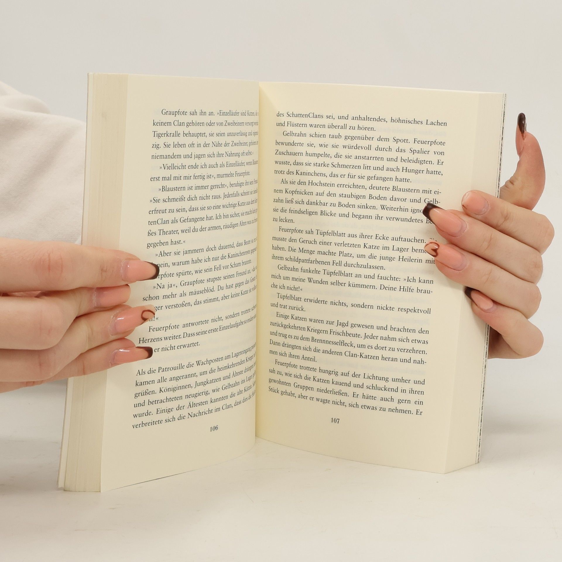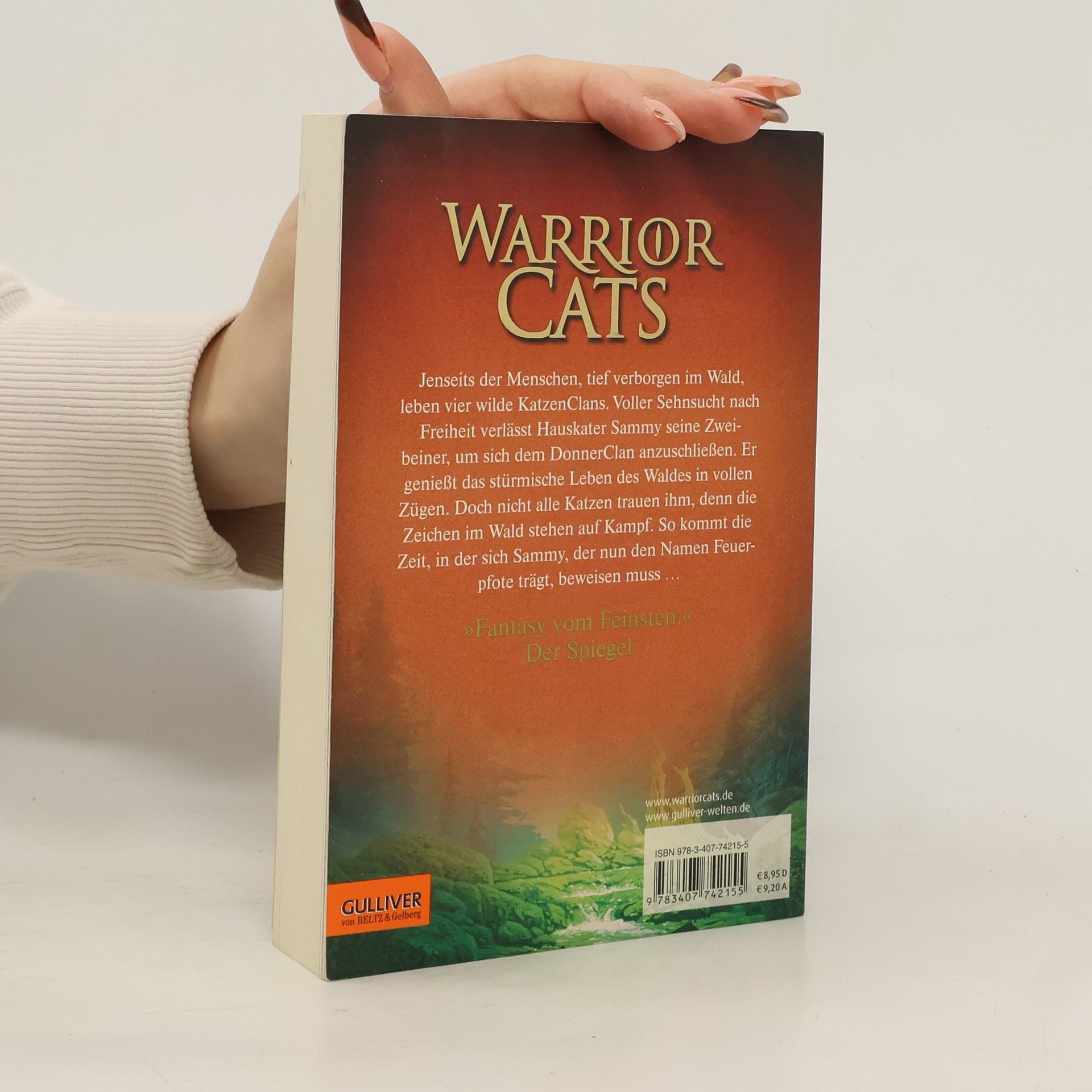 Ein Wald. Vier Clans. Und alle wollen überleben. Jenseits der Menschen, tief verborgen im Wald, leben die Katzen der Clans wild und ungezähmt. Feuerpfote, der seine Zweibeiner verließ, um sich dem DonnerClan anzuschließen, genießt das stürmische Leben des Waldes in vollen Zügen. Seite an Seite mit den wilden Katzen lernt er zu jagen, seine Instinkte zu gebrauchen, er lernt den Wald zu hören und seine Feinde zu riechen. Doch das Leben stellt ihn auch immer wieder auf die Probe, denn der Platz ist eng, das Futter knapp. Blaustern, die Anführerin des DonnerClans, hat Zweifel, ob es der Clan schaffen wird, bis zur Blattfrische zu überleben. Da erfährt Feuerpfote von der Prophezeiung: „Nur Feuer kann den Clan retten!“ Was hat diese Prophezeiung zu bedeuten?