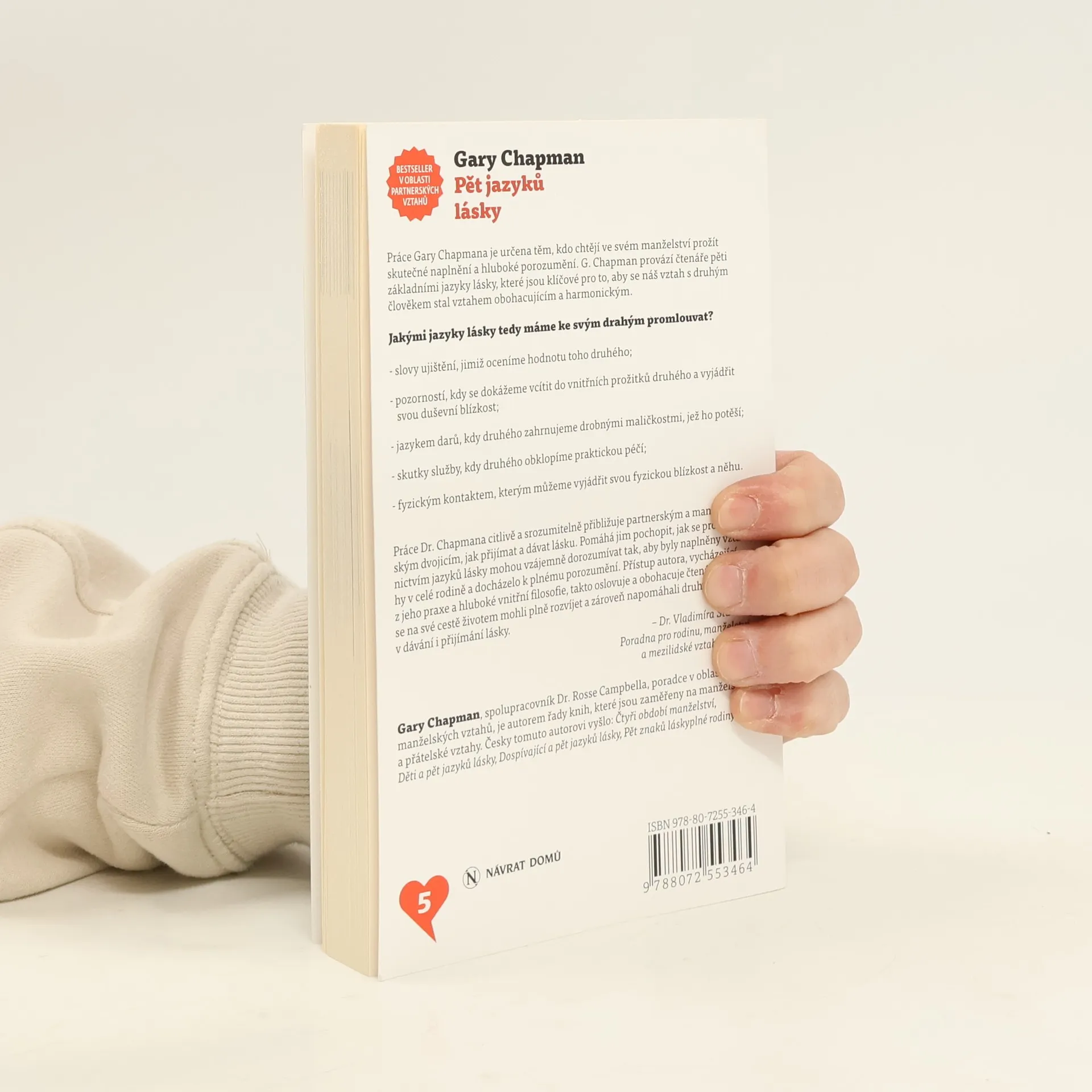 Práce Gary Chapmana je určena těm, kdo chtějí ve svém manželství prožít skutečné naplnění a hluboké porozumění. G. Chapman provází čtenáře pěti zákadními jazyky lásky, které jsou klíčové pro to, aby se náš vztah s druhým člověkem stal obohacujícím a harmonickým.