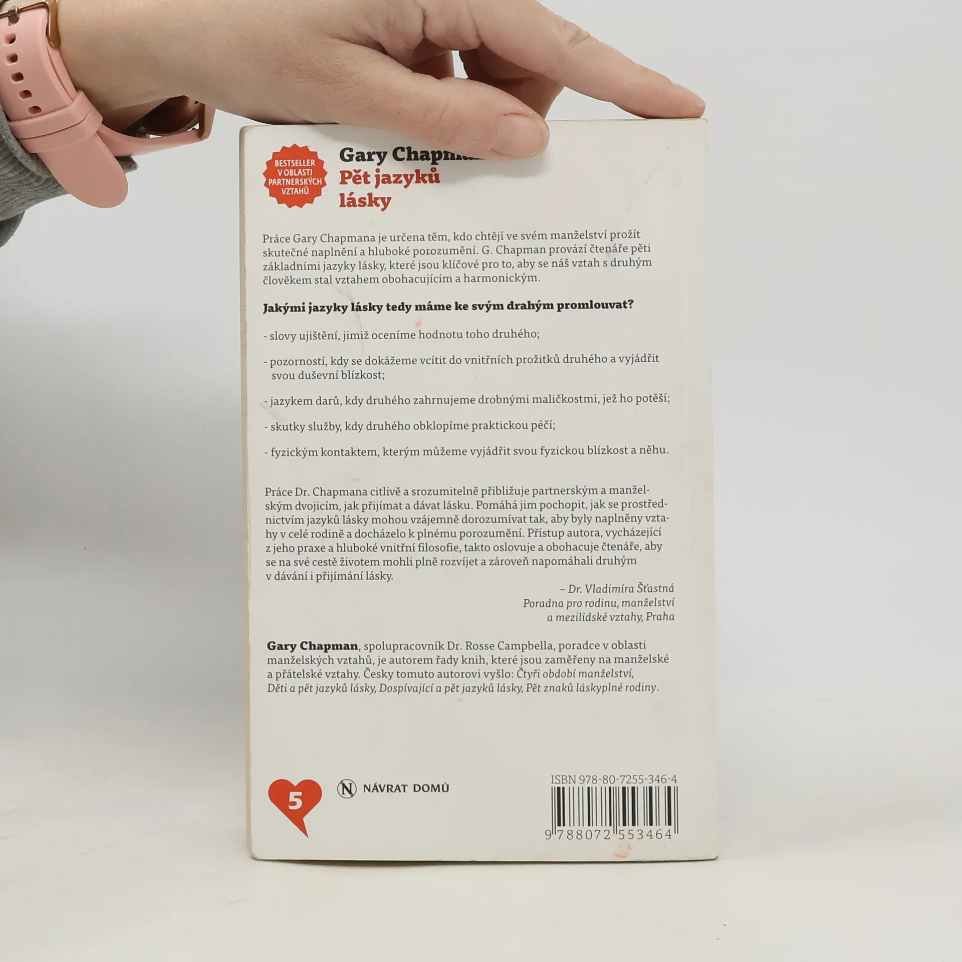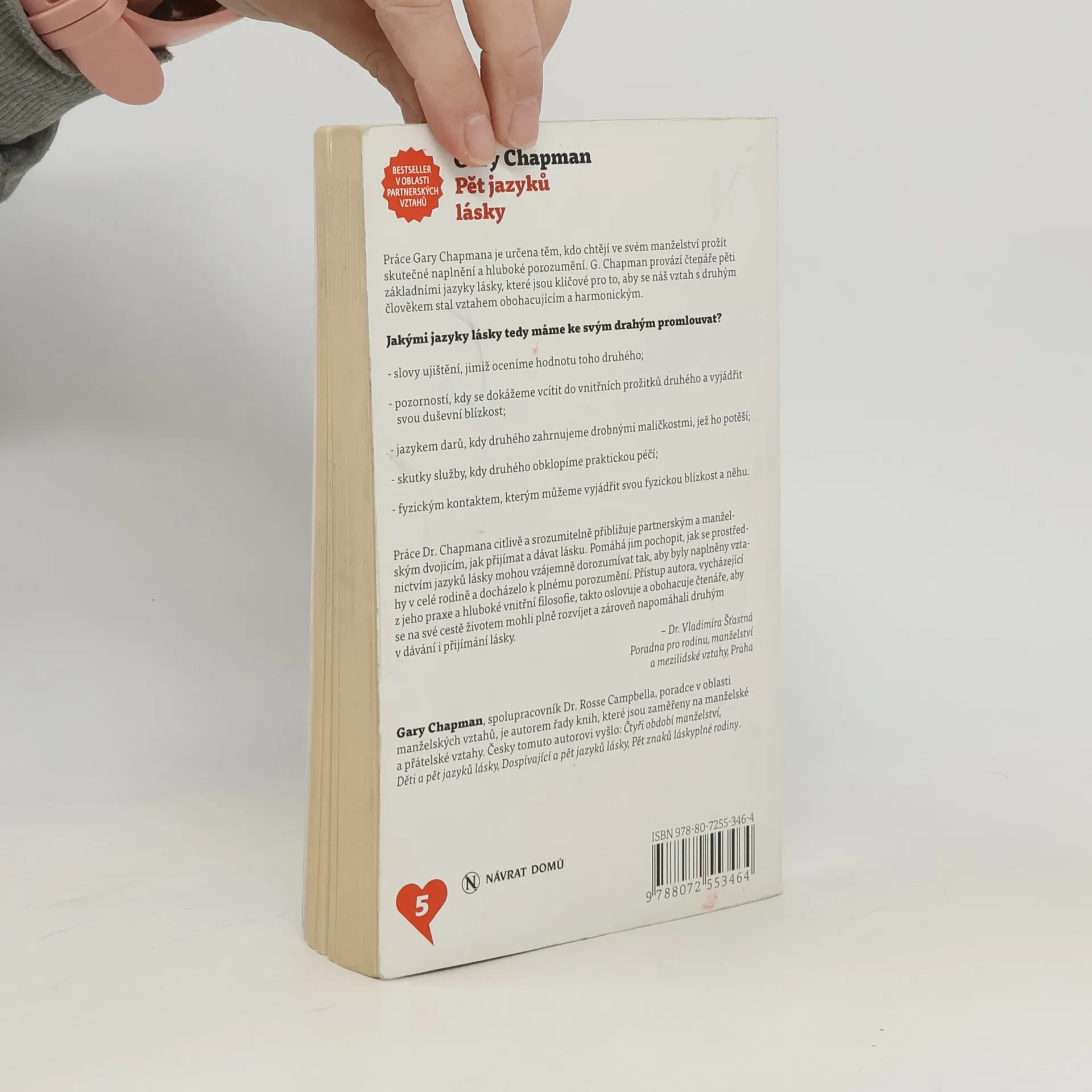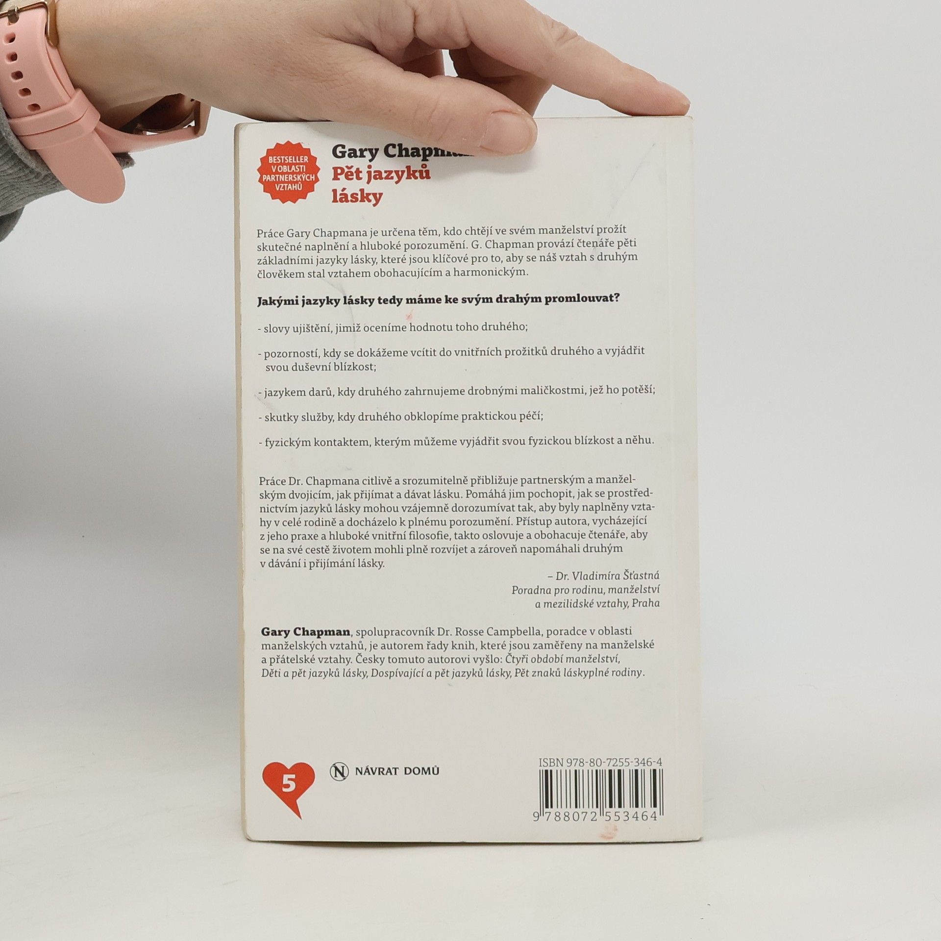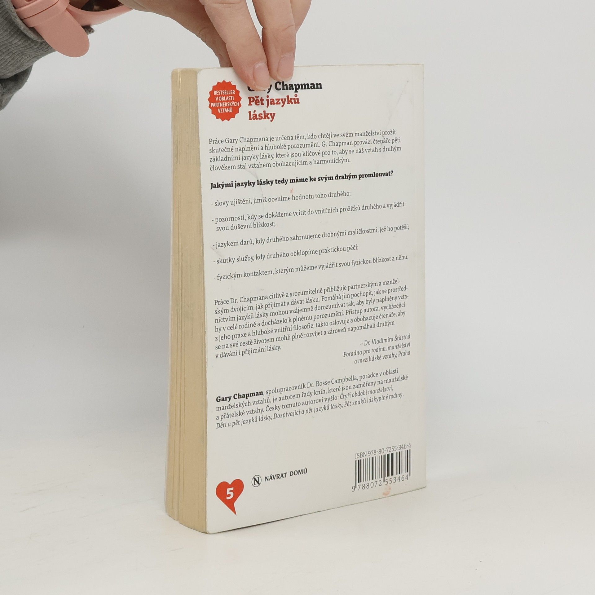 Práce Gary Chapmana je určena těm, kdo chtějí ve svém manželství prožít skutečné naplnění a hluboké porozumění. G. Chapman provází čtenáře pěti zákadními jazyky lásky, které jsou klíčové pro to, aby se náš vztah s druhým člověkem stal obohacujícím a harmonickým.
