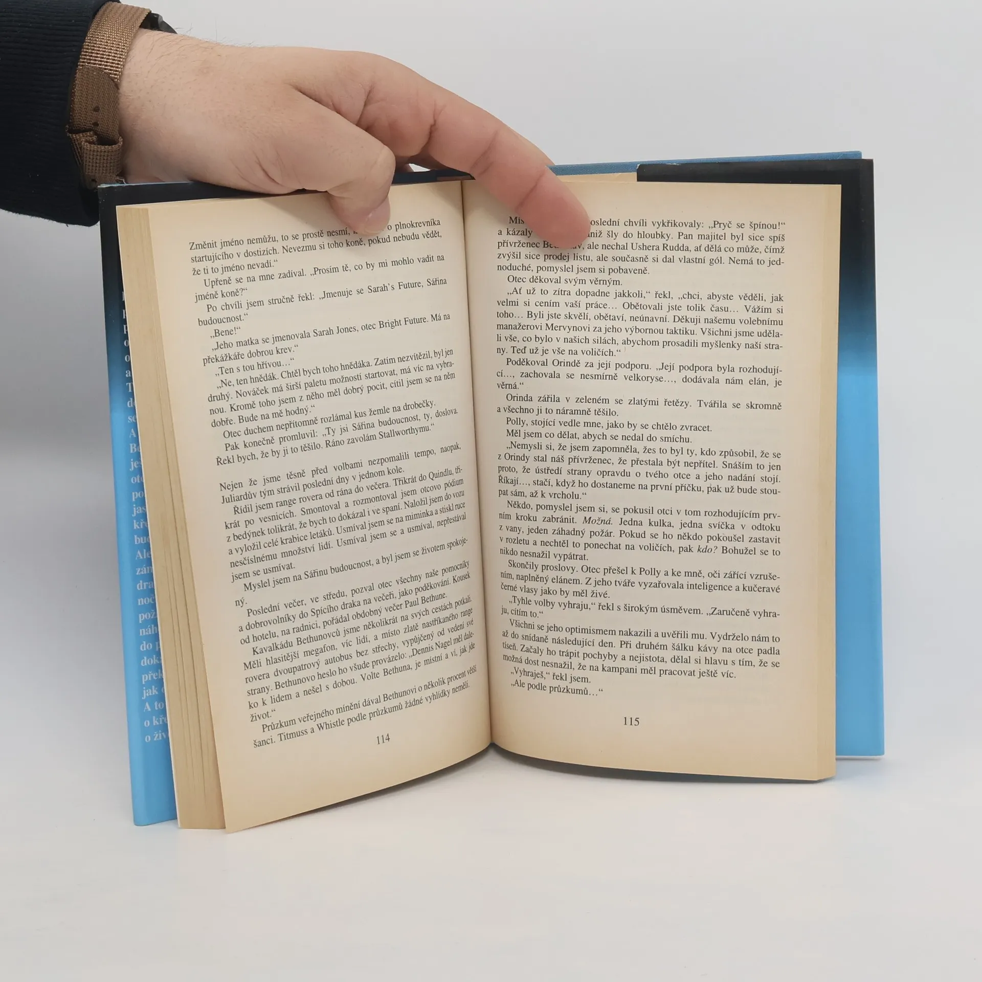 Benedikt Juliard jezdí překážkové dostihy pro amatéry, sní o profesionální kariéře, o vítězství ve Velké národní, ale najednou je všechno jinak. Trenér ho vyhodil, že není dost dobrý, otec ho chce mít vedle sebe ve volební kampani. A vzápětí vysoká škola. Beneditk musí poslechnout, ještě není plnoletý, kromě toho otce obdivuje. Benediktovi politika nic neříká, je mu však jasné, že otec se s poslaneckým křeslem nespokojí, přijde čas, bude usilovat o křeslo premiéra. Ale kdosi má zřejmě jiné záměry. Události dostávají dramatický spád. Tajemný noční výstřel, poškozeny vůz, požár – opravdu to byly pouze náhody? Benedikt se pouští do pátrání, přitom nejednou dokazuje, jak rychle se nad překážkami naučil rozhodovat, jak obratně umí padat. A to i v okamžiku, kdy se boj o křesla změnil v otevřený boj o život.