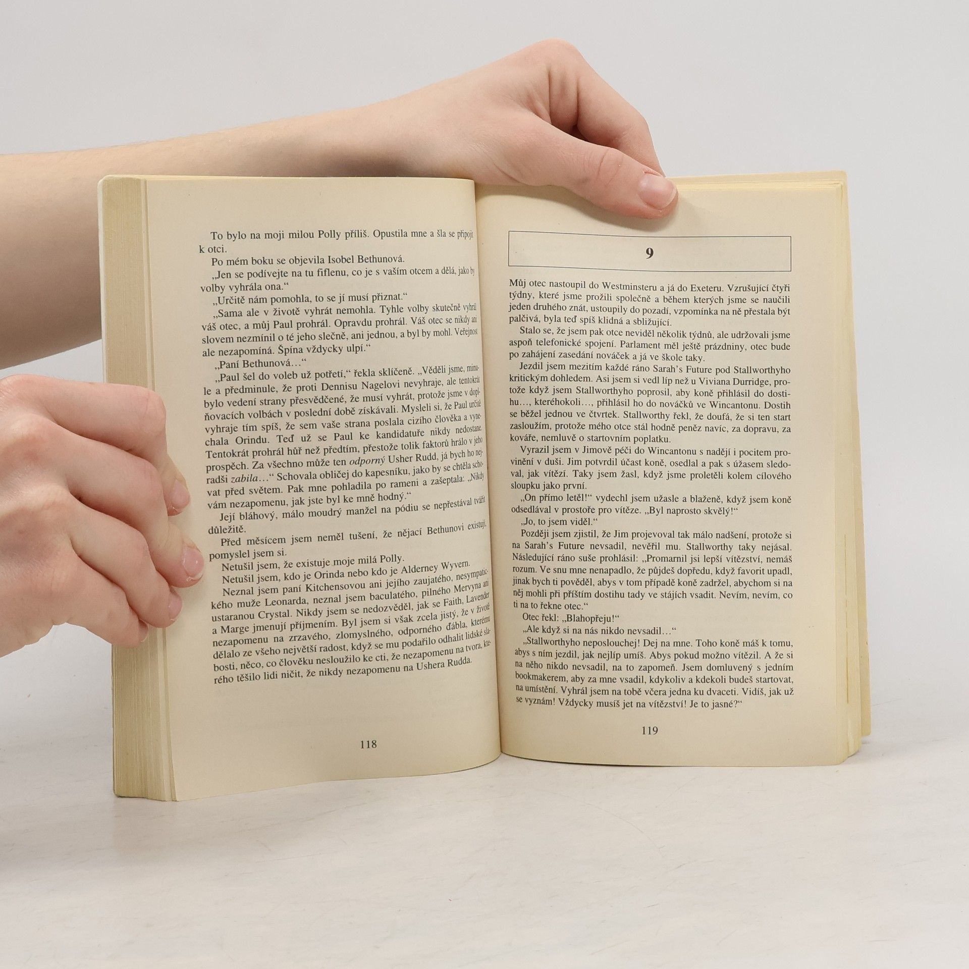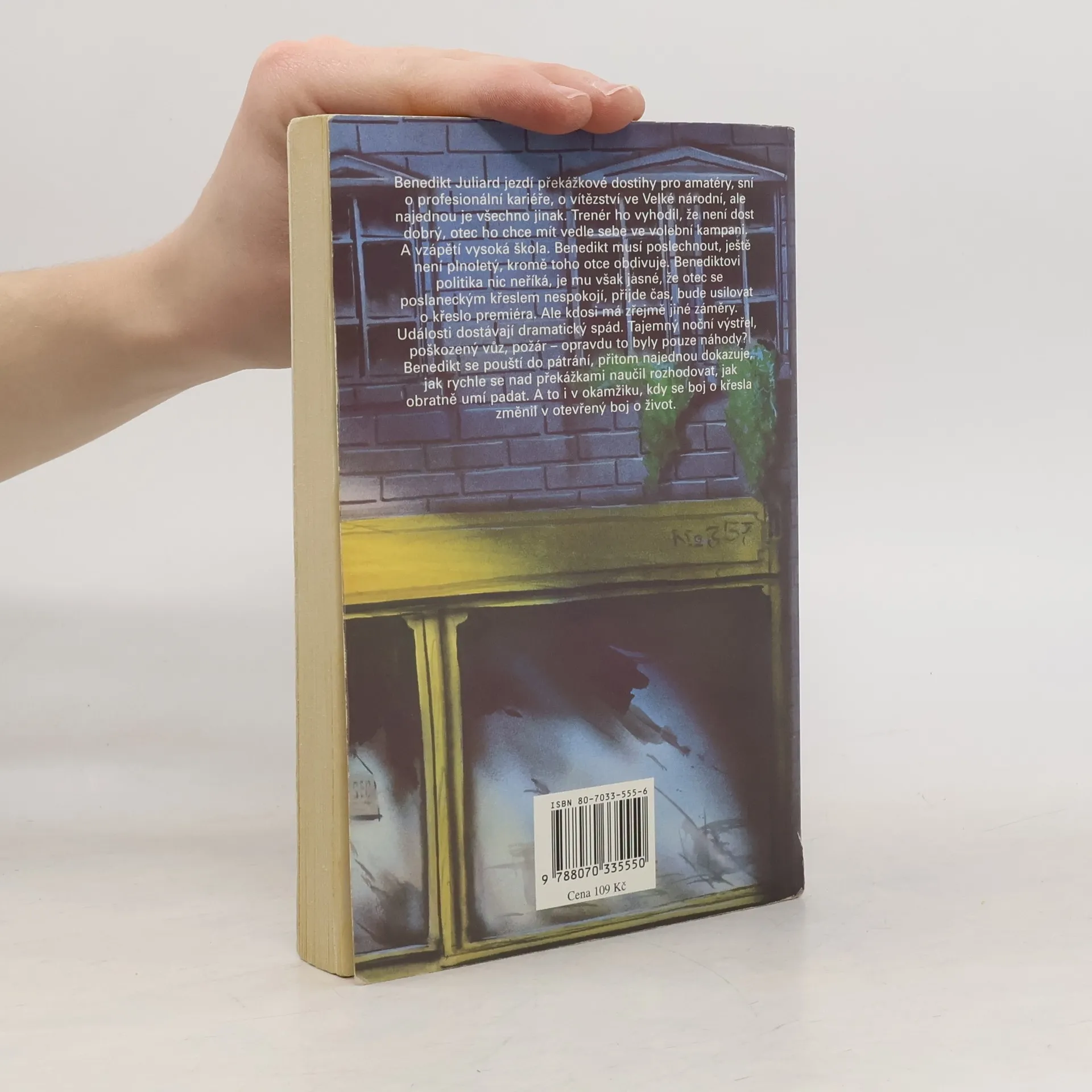 Benedikt Juliard jezdí překážkové dostihy pro amatéry, sní o profesionální kariéře, o vítězství ve Velké národní, ale najednou je všechno jinak. Trenér ho vyhodil, že není dost dobrý, otec ho chce mít vedle sebe ve volební kampani. A vzápětí vysoká škola. Beneditk musí poslechnout, ještě není plnoletý, kromě toho otce obdivuje. Benediktovi politika nic neříká, je mu však jasné, že otec se s poslaneckým křeslem nespokojí, přijde čas, bude usilovat o křeslo premiéra. Ale kdosi má zřejmě jiné záměry. Události dostávají dramatický spád. Tajemný noční výstřel, poškozeny vůz, požár – opravdu to byly pouze náhody? Benedikt se pouští do pátrání, přitom nejednou dokazuje, jak rychle se nad překážkami naučil rozhodovat, jak obratně umí padat. A to i v okamžiku, kdy se boj o křesla změnil v otevřený boj o život.