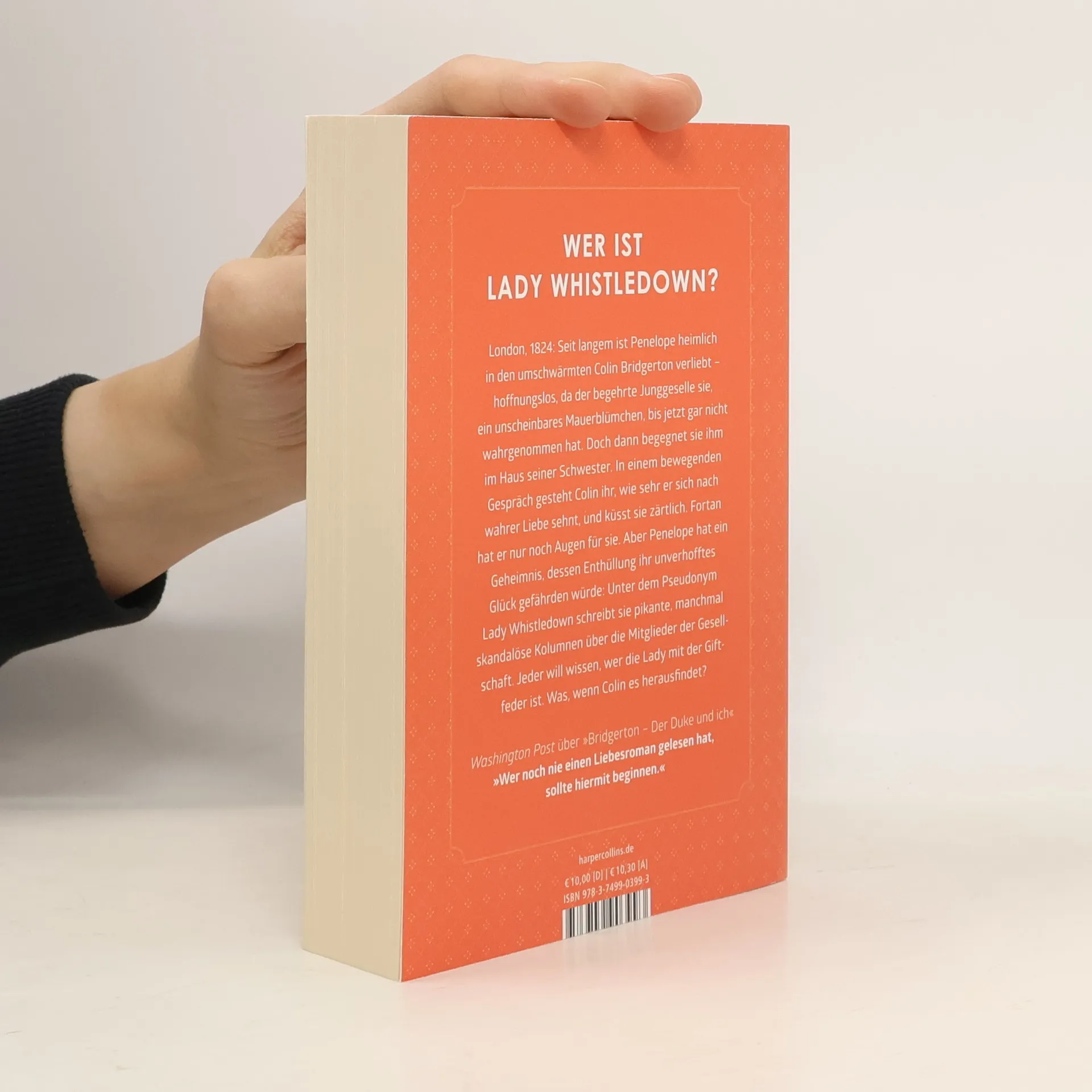 Wer ist Lady Whistledown? London, 1824: Seit langem ist Penelope heimlich in den umschwärmten Colin Bridgerton verliebt – hoffnungslos, da der begehrte Junggeselle sie, ein unscheinbares Mauerblümchen, bis jetzt gar nicht wahrgenommen hat. Doch dann begegnet sie ihm im Haus seiner Schwester. In einem bewegenden Gespräch gesteht Colin ihr, wie sehr er sich nach wahrer Liebe sehnt, und küsst sie zärtlich. Fortan hat er nur noch Augen für sie. Aber Penelope hat ein Geheimnis, dessen Enthüllung ihr unverhofftes Glück gefährden würde: Unter dem Pseudonym Lady Whistledown schreibt sie pikante, manchmal skandalöse Kolumnen über die Mitglieder der Gesellschaft. Jeder will wissen, wer die Lady mit der Giftfeder ist. Was, wenn Colin es herausfindet? »Wer noch nie einen Liebesroman gelesen hat, sollte hiermit beginnen.« Washington Post über »Bridgerton– Der Duke und ich«