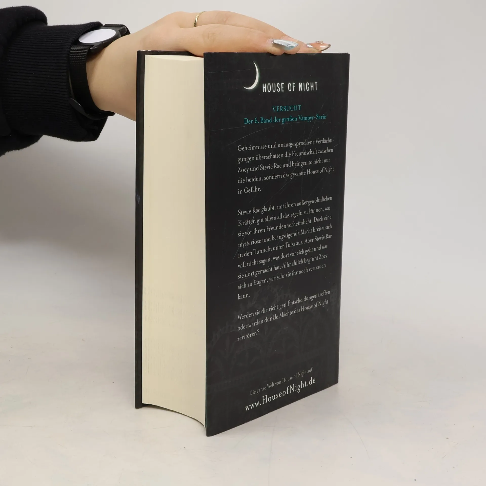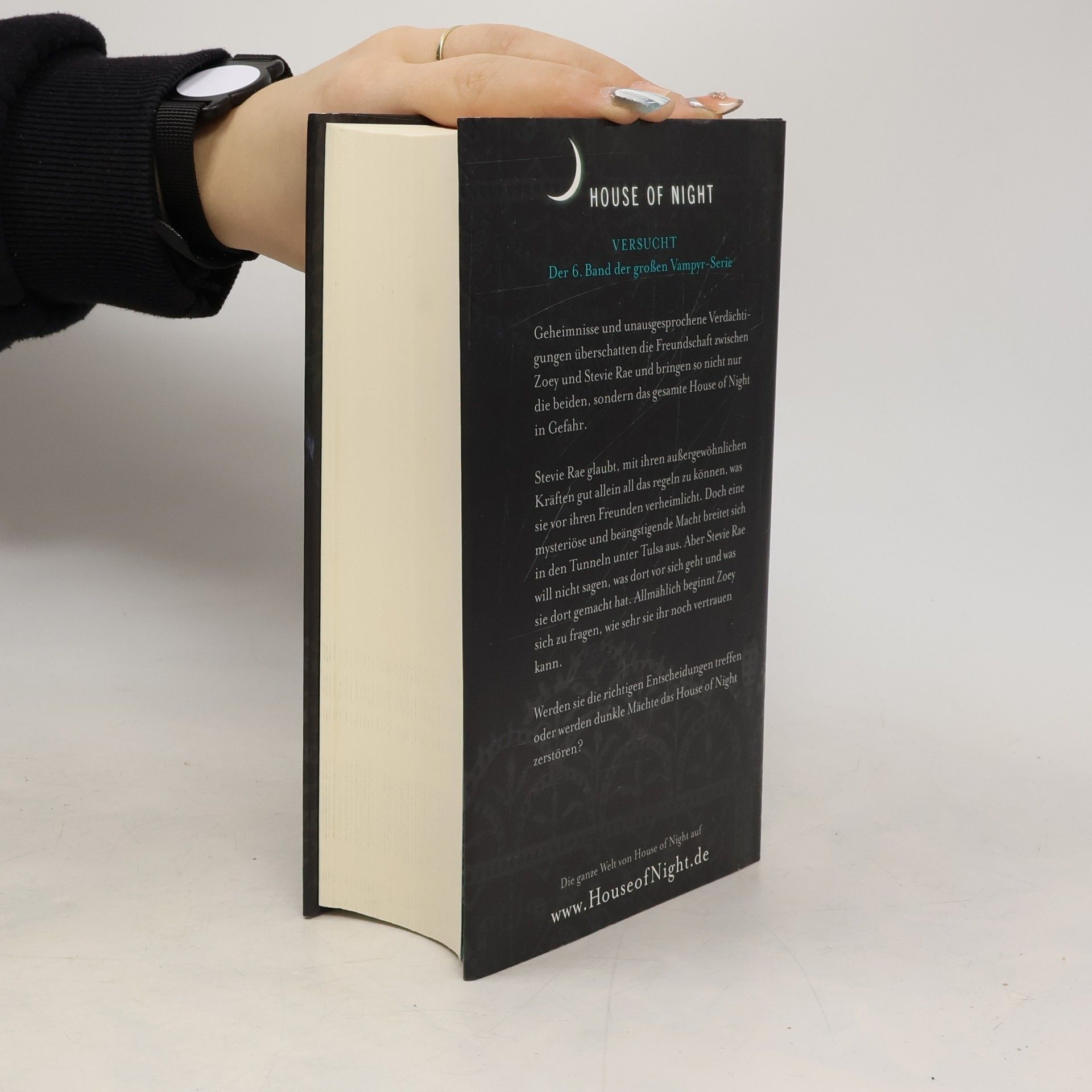Nachdem Zoey und ihre Freunde Kalona und Neferet aus Tulsa vertrieben haben, hätten sie eigentlich eine Pause verdient. Aber obwohl Zoey und ihr sexy Krieger Stark sich erst einmal von ihrer Begegnung mit dem Tod erholen müssten und auch die Jungvampyre die Nachwirkungen von Neferets Terrorherrschaft zu verarbeiten hätten, ist ihnen allen keine Ruhe vergönnt. Stevie Rae glaubt mit ihren außergewöhnlichen Kräften gut allein all das regeln zu können, was sie vor ihren Freunden verheimlicht. Doch eine mysteriöse und beängstigende Macht breitet sich in den Tunneln unter Tulsa aus. Aber Stevie Rae will nicht sagen, was dort vor sich geht und was sie dort gemacht hat. Allmählich beginnt Zoey sich zu fragen, ob sie ihr überhaupt noch vertrauen kann.Werden sie die richtigen Entscheidungen treffen oder werden dunkle Mächte das House of Night zerstören?»Versucht« ist der sechste Band der »House of Night«-Serie