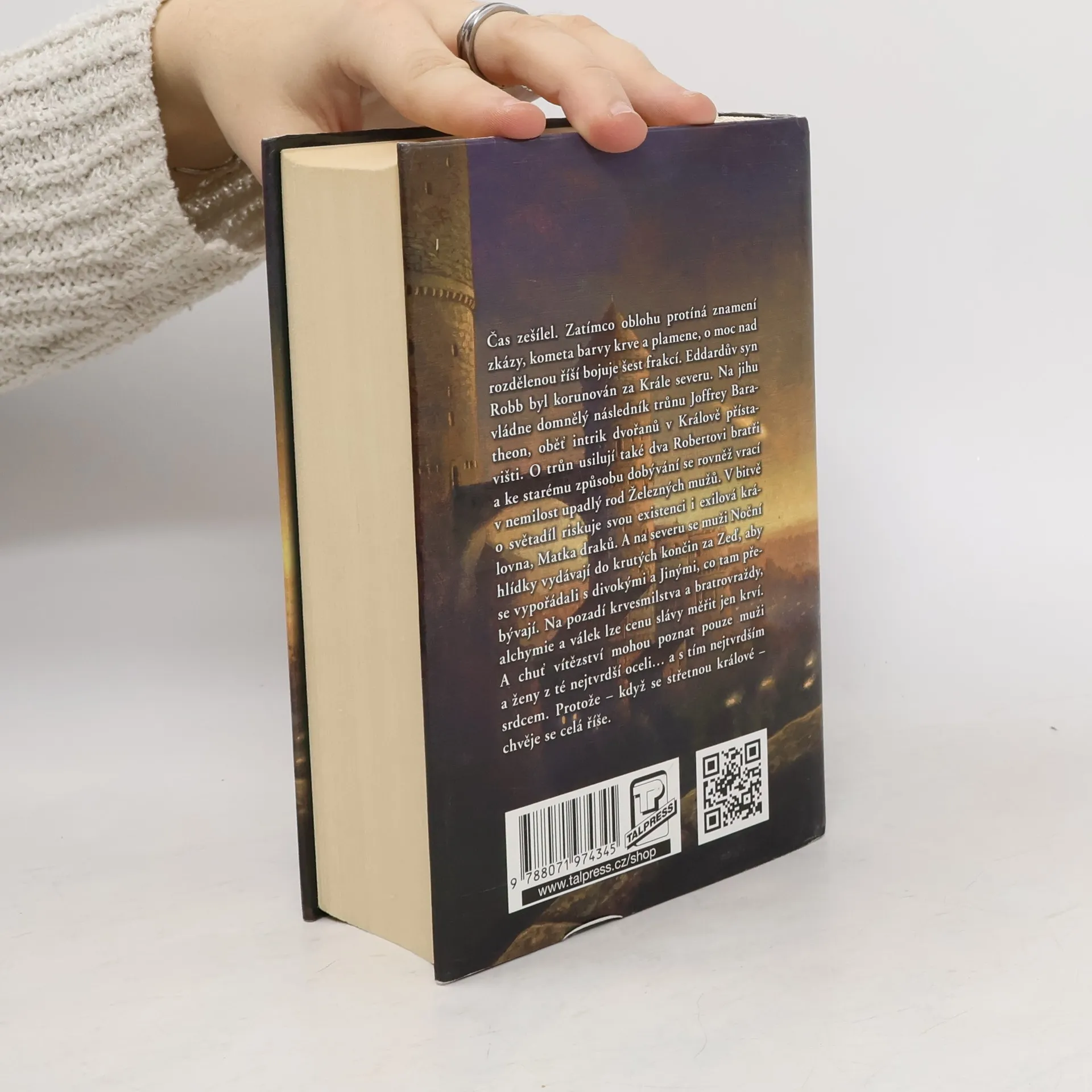 Čas zešílel. Deset let dlouhé léto pokoje a hojnosti se blíží ke konci, a jako zuřivá bestie se neodvratně blíží krutá, mrazivá zima. Dva mocní muži – král Robert Baratheon a lord Eddard Stark –, kteří třímali žezlo moci v časech nuceného míru, jsou mrtví. Zatímco oblohu protíná znamení zkázy – kometa barvy krve a plamene –, o moc nad rozdělenou říší bojuje šest frakcí. Eddarův syn Robb byl korunován za Krále severu. Na jihu vládne domnělý následník trůnu Joffrey Baratheon, oběť intrik dvořanů v Králově přístavišti. O trůn usilují také dva Robertovi bratři a ke starému způsobu dobývání se rovněž vrací v nemilost upadlý rod Železných mužů. V bitvě o světadíl riskuje svou existenci i exilová královna, Matka draků. A na severu se muži Noční hlídky vydávají do krutých končin za Zeď, aby se vypořádali s divokými a Jinými, co tam přebývají. Na pozadí krvesmilstva a bratrovraždy, alchymie a válek lze cenu slávy měřit jen krví. A chuť vítězství mohou poznat pouze muži a ženy z té nejtvrdší oceli… a s tím nejtvrdším srdcem. Protože – když se střetnou králové, chvěje se celá říše.