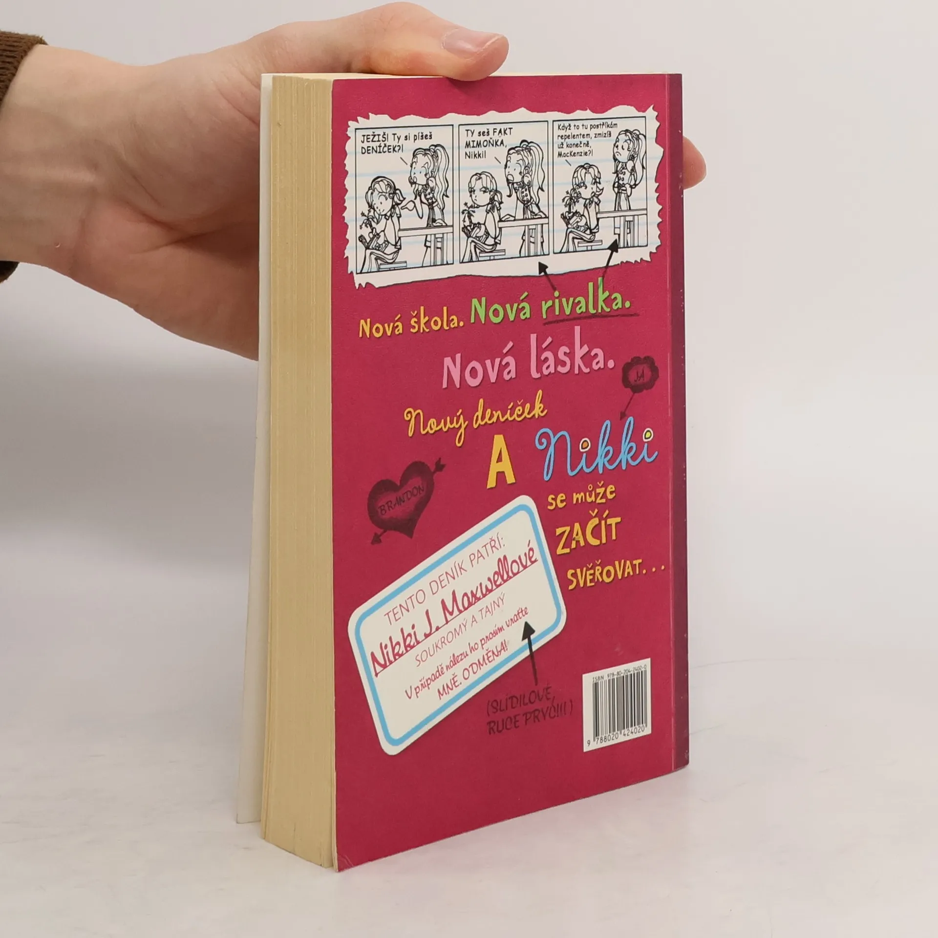 Nestačí, že Nikki J. Maxwellová má otce, který se živí hubením brouků. Ještě se kvůli tomu dostane do prestižní soukromé školy, kam moc nezapadá. Z pohledu její zapřisáhlé nepřítelkyně MacKenzie, dokonalé dívky, která má vše, co je třeba, je Nikki prostě „mimoňka“. A toto je její deník. Zachycující příhody každodenního života, například jak si chtěla z naslouchátka vyrobit luxusní hands-free, jak se snažila sbalit nejhezčího kluka a co zažívala se svými novými kamarádkami, Chloe a Zoey. Doplněno výstižnými ilustracemi. První vydání.