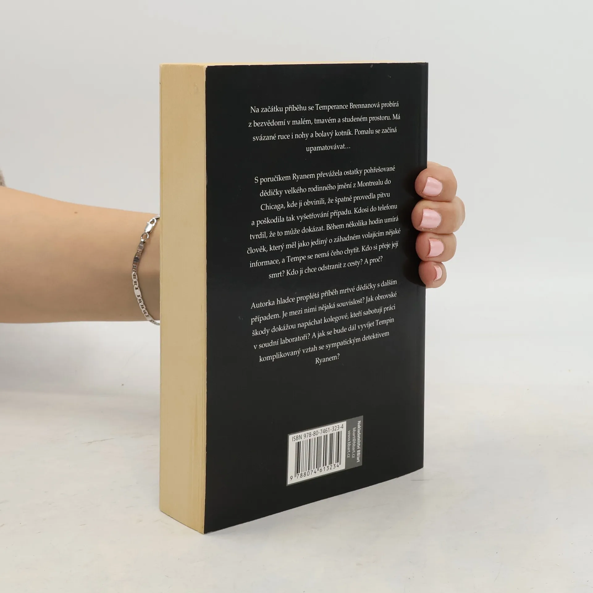 Kdosi si přeje smrt Temperance Brennanové. Kdo ji chce odstranit z cesty? Proč? Na začátku nového příběhu se Temperance Brennanová probírá z bezvědomí v malém, tmavém a studeném prostoru. Má svázané ruce i nohy a bolavý kotník. Pomalu se začíná upamatovávat… S poručíkem Ryanem převážela ostatky pohřešované dědičky velkého rodinného jmění z Montrealu do Chicaga, kde ji obvinili, že špatně provedla pitvu a poškodila tak vyšetřování případu. Kdosi do telefonu tvrdil, že to může dokázat. Během několika hodin umírá člověk, který měl jako jediný o záhadném volajícím nějaké informace, a Tempe se nemá čeho chytit. Kdo si přeje její smrt? Kdo ji chce odstranit z cesty? A proč? Autorka hladce proplétá příběh mrtvé dědičky s dalším případem. Je mezi nimi nějaká souvislost? Jak obrovské škody dokážou napáchat kolegové, kteří sabotují práci v soudní laboratoři? A jak se bude dál vyvíjet Tempin komplikovaný vztah se sympatickým detektivem Ryanem?
