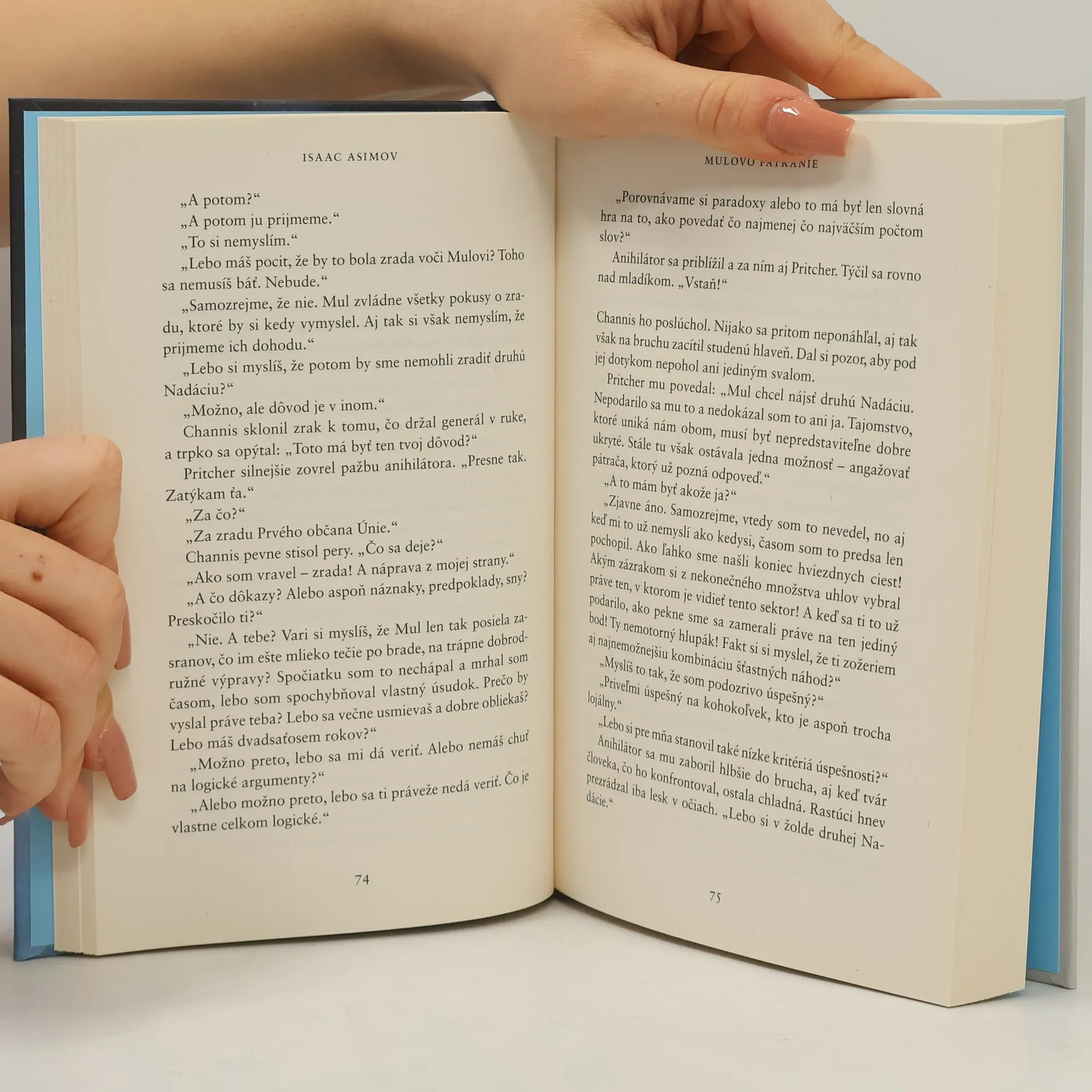 Držiteľ ceny Hugo za najlepšiu žánrovú sériu všetkých čias. Kultová sci-fi séria Nadácia vychádza v novom slovenskom preklade pri príležitosti stého výročia narodenia autora Isaaca Asimova. Nadácia upadla do područia mutanta Mula. A napriek tomu, že extrémne rýchlo dobyl nemalú časť vesmíru, stále to nepovažuje za dostatočné. Je presvedčený, že na to, aby dosiahol svoj cieľ, musí zničiť bájnu druhú Nadáciu. Národ, ktorý vraj na všetko historické dianie dohliada z bezpečnej vzdialenosti, ukrytý pred zvedavcami. Ťahá druhá Nadácia potichu za nitky osudu alebo je len rozmarom Hariho Seldona, tvorcu najodvážnejšieho záchranného plánu v dejinách ľudstva? Séria Nadácia je vrcholné dielo svetovej sci-fi literatúry. Romány Isaaca Asimova ponúkajú neprekonateľnú súhru strategických manévrov, novátorských myšlienok a rozsiahleho budovania budúceho sveta. Zaznamenávajú nekončiaci súboj skupiny odvážnych mužov a žien‚ ktorí sú odhodlaní zachovať ľudský život v galaxii uvrhnutej do tridsaťtisícročnej temnoty plnej násilia a nekončiacich bojov.