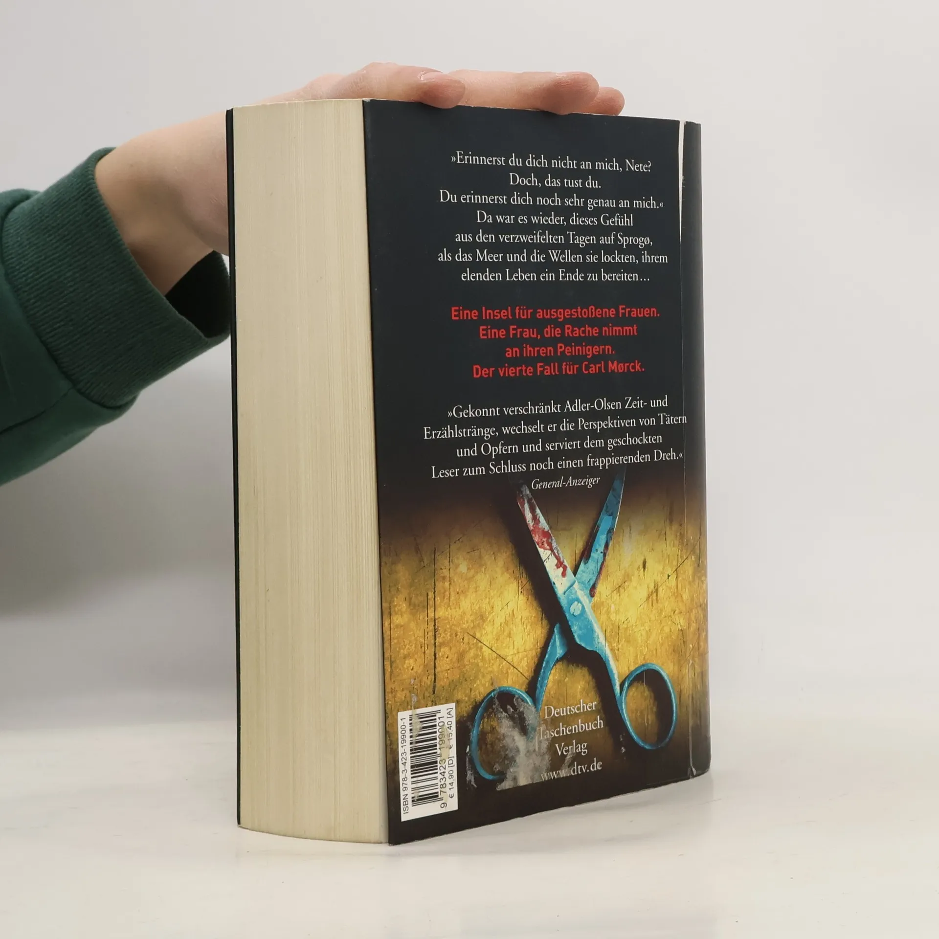 Der vierte Fall für das Sonderdezernat Q Eine Reihe vermisster Personen aus dem Jahr 1987, die durch eine Person und deren entsetzliches Schicksal verbunden sind: Nete Hermansen. Eine junge Frau ohne jede Chance auf ein selbstbestimmtes Leben, von Menschen grausam misshandelt, wird zwangssterilisiert durch einen fanatischen Arzt und verbannt nach Sprogø, der Insel für ausgestoßene Frauen. Sie nimmt grausam Rache ...