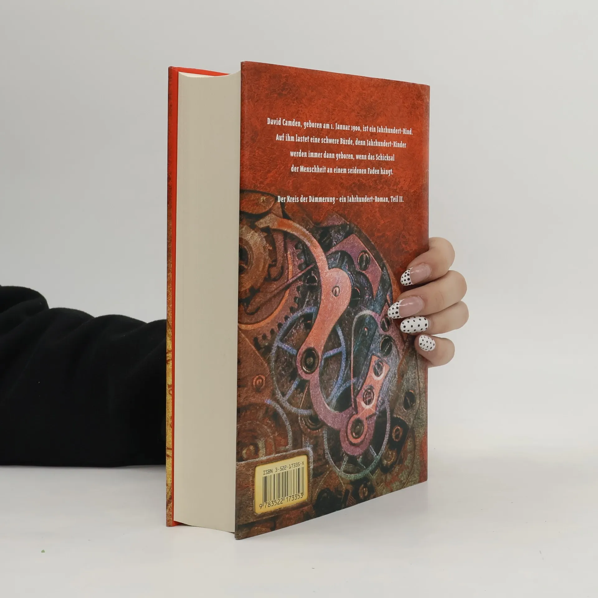 David Camden, ein außergewöhnliches Talent und das Jahrhundert-Kind, kämpft gegen den geheimen Kreis der Dämmerung. Nach großen Opfern und dem Verlust vieler Freunde erringt er 1929 seinen ersten Sieg über einen der zwölf Verschwörer. Auf der Flucht verfolgt er die Spuren des Geheimbundes weltweit, bis er ins nationalsozialistische Deutschland gelangt. Hier verschwindet seine jüdische Frau Rebekka spurlos, und David spürt, wie sich die Bedrohung um ihn verstärkt. Ralf Isau, 1956 in Berlin geboren, ist neben dem Schreiben auch Computer-Fachmann und lebt mit seiner Familie in der Nähe von Stuttgart. Um den seelenlosen Maschinen zu entkommen, findet er seine Inspiration in der fantastischen Literatur. Seit 1988 schreibt er eigene Romane und hat sich schnell eine wachsende Fangemeinde erobert. In einer spannenden Szene umklammert David die Reling der „Taifun“ und blickt in tiefe Täler und hohe Gipfel. Das Schiff, ein kleiner Käfer auf dem riesigen Seeungetüm, wird von den Wellen hin und her geworfen. Das Oberdeck ist menschenleer, doch David spürt eine bedrohliche Präsenz, die ihn verfolgt.