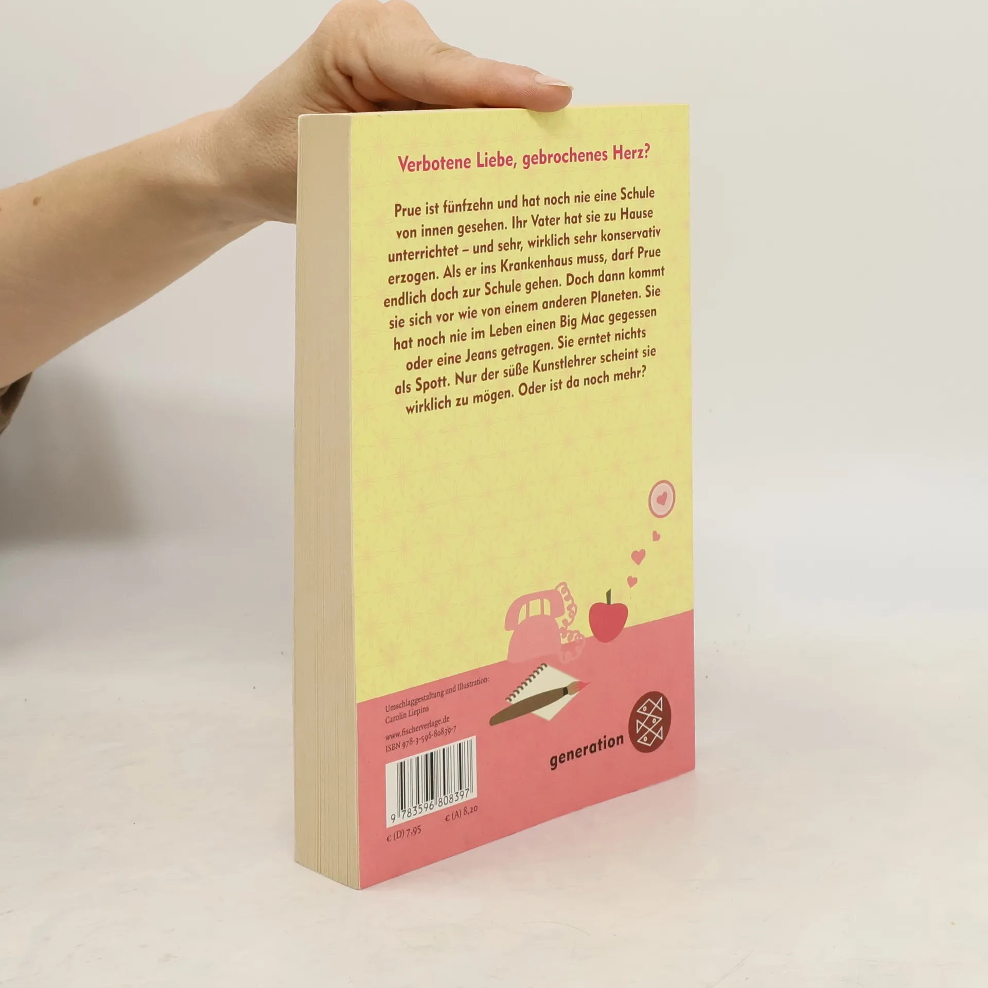 Prue ist fünfzehn und hat noch nie eine Schule von innen gesehen. Ihr Vater hat sie zu Hause unterrichtet – und sehr, wirklich sehr konservativ erzogen. Als er einen Schlaganfall erleidet, darf Prue endlich doch zur Schule gehen. Endlich sein wie alle anderen. Denkt sie. Aber sie erwartet die Hölle. Mit ihren altmodischen Klamotten erntet sie nichts als Spott. Nur der junge Kunstlehrer ist anders. Für ihn schwärmen viele Mädchen. Doch Prue ist einmal mehr eine Ausnahme: Ihre Liebe wird erwidert.