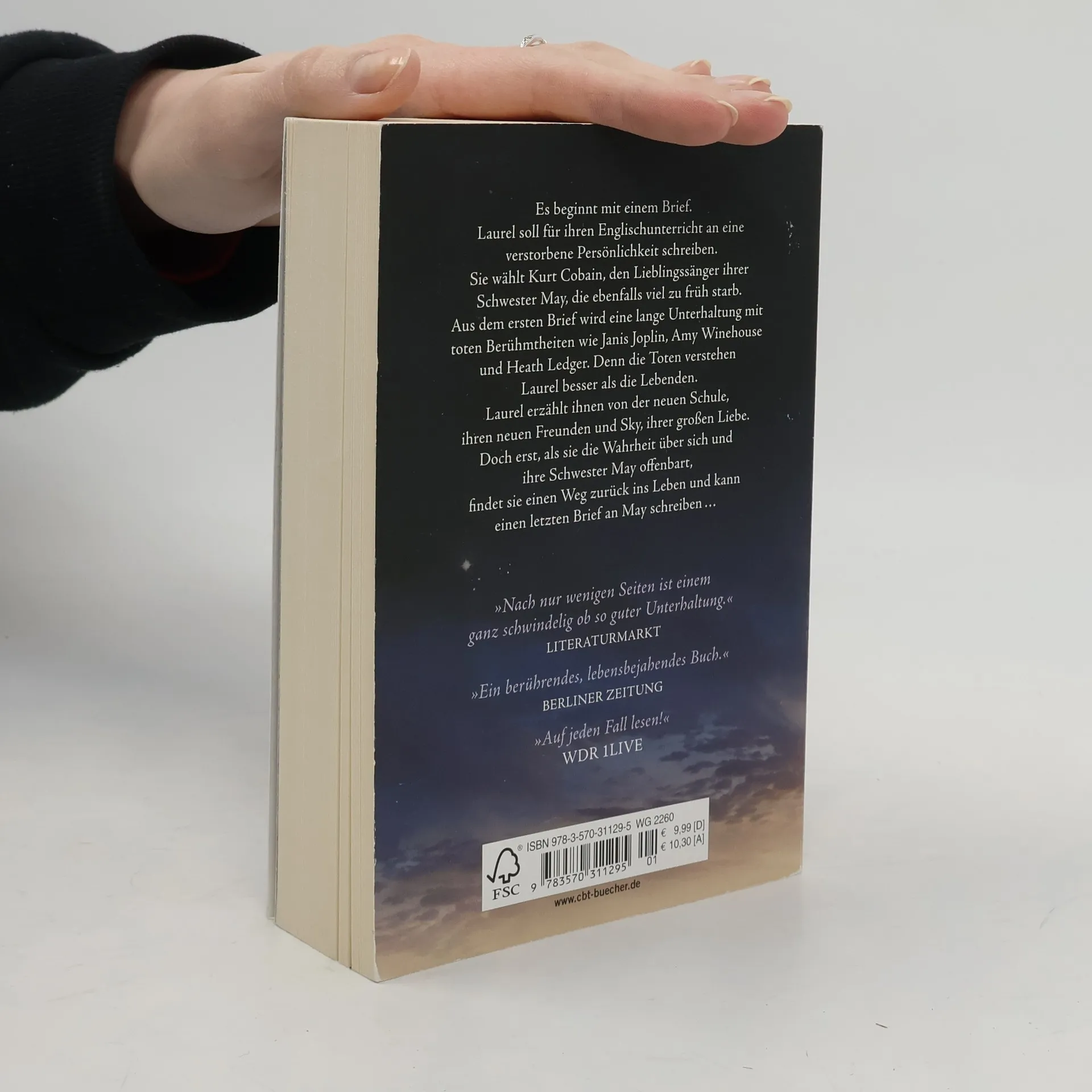 Eine Geschichte voller Liebe und Weisheit: Das beeindruckendste Jugendbuch des Jahres Es beginnt mit einem Brief. Laurel soll für ihren Englischunterricht an eine verstorbene Persönlichkeit schreiben. Sie wählt Kurt Cobain, den Lieblingssänger ihrer Schwester May, die ebenfalls viel zu früh starb. Aus dem ersten Brief wird eine lange Unterhaltung mit toten Berühmtheiten wie Janis Joplin, Amy Winehouse und Heath Ledger. Denn die Toten verstehen Laurel besser als die Lebenden. Laurel erzählt ihnen von der neuen Schule, ihren neuen Freunden und Sky, ihrer großen Liebe. Doch erst, als sie die Wahrheit über sich und ihre Schwester May offenbart, findet sie den Weg zurück ins Leben und kann einen letzten Brief an May schreiben …