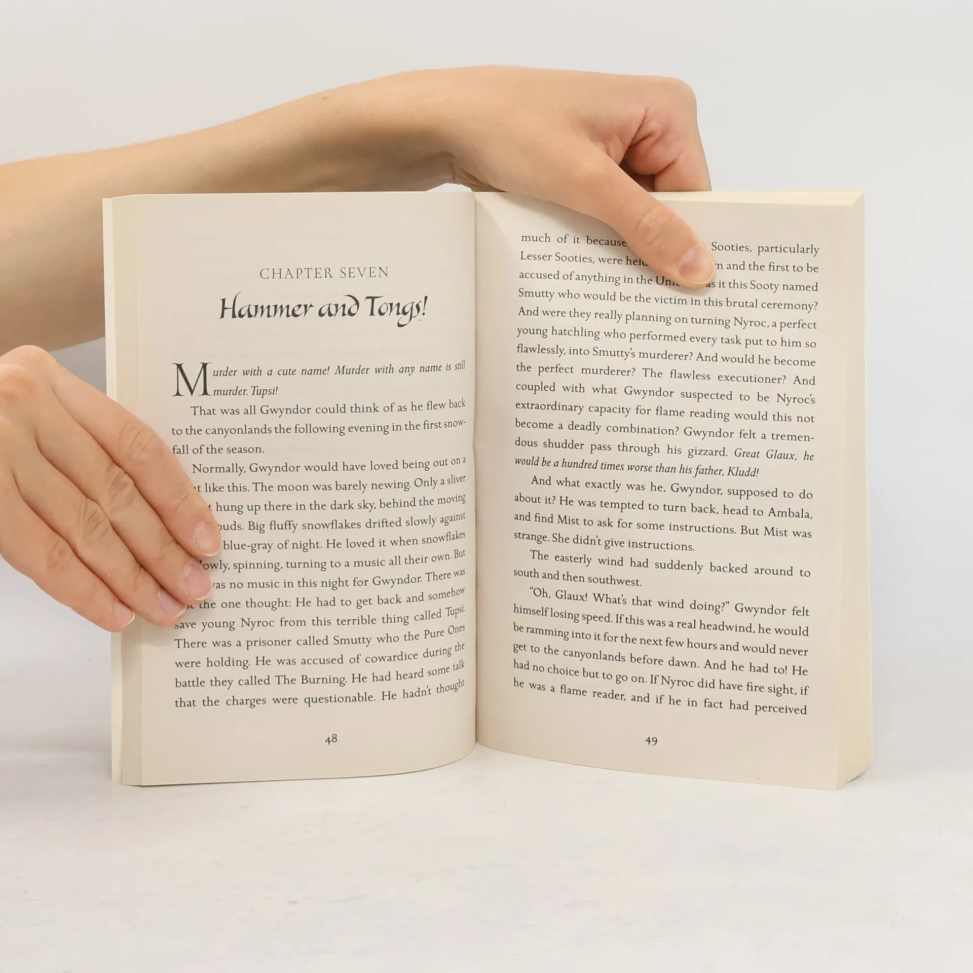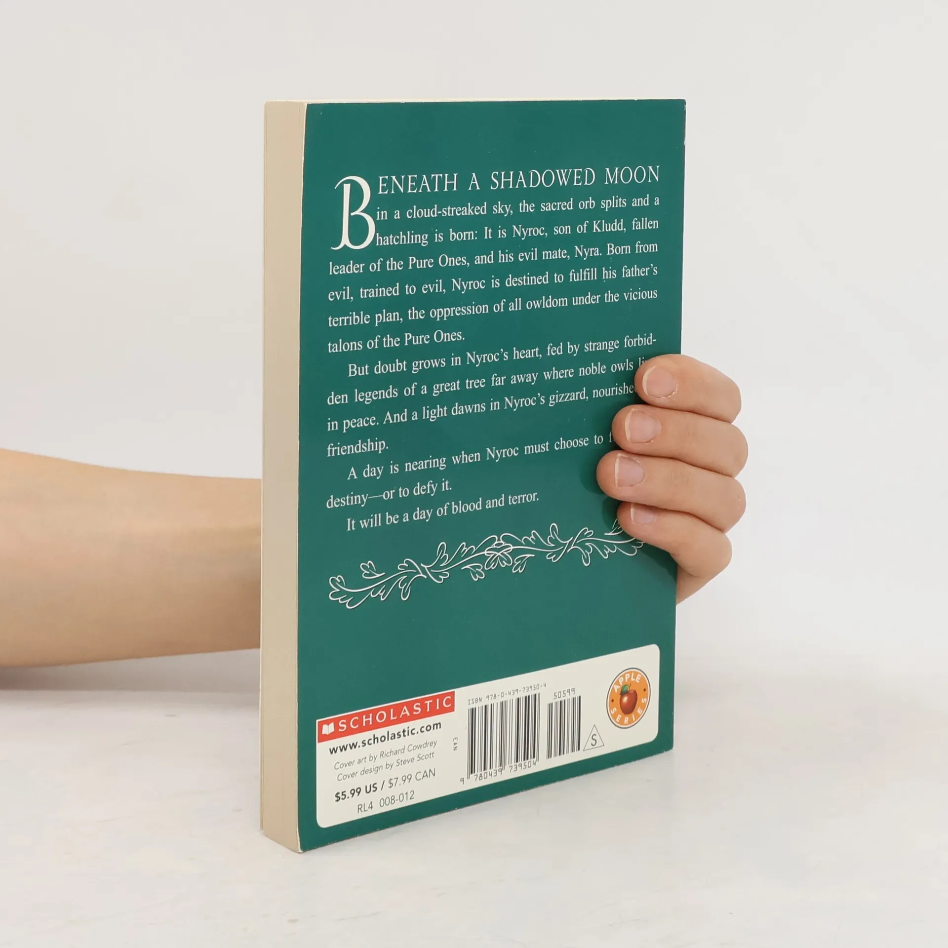 Beneath a shadowed moon in a cloud-streaked sky, the sacred orb splits and a hatching is born: It is Nyroc, son of Kludd, fallen leader of the Pure Ones, and his evil mate, Nyra. Born from evil, trained to evil, Nyroc is destined to fulfill his father's terrible plan, the oppression of all owldom under the vicious talons of the Pure Ones. But doubt grows in Nyroc's heart, fed by strange forbidden legends of a great tree far away where noble owls live in peace. And a light dawns in Nyroc's gizzard, nourished by friendship. A day is nearing when Nyroc must choose to fulfill his destiny-or defy it. It will be a day of blood and terror.