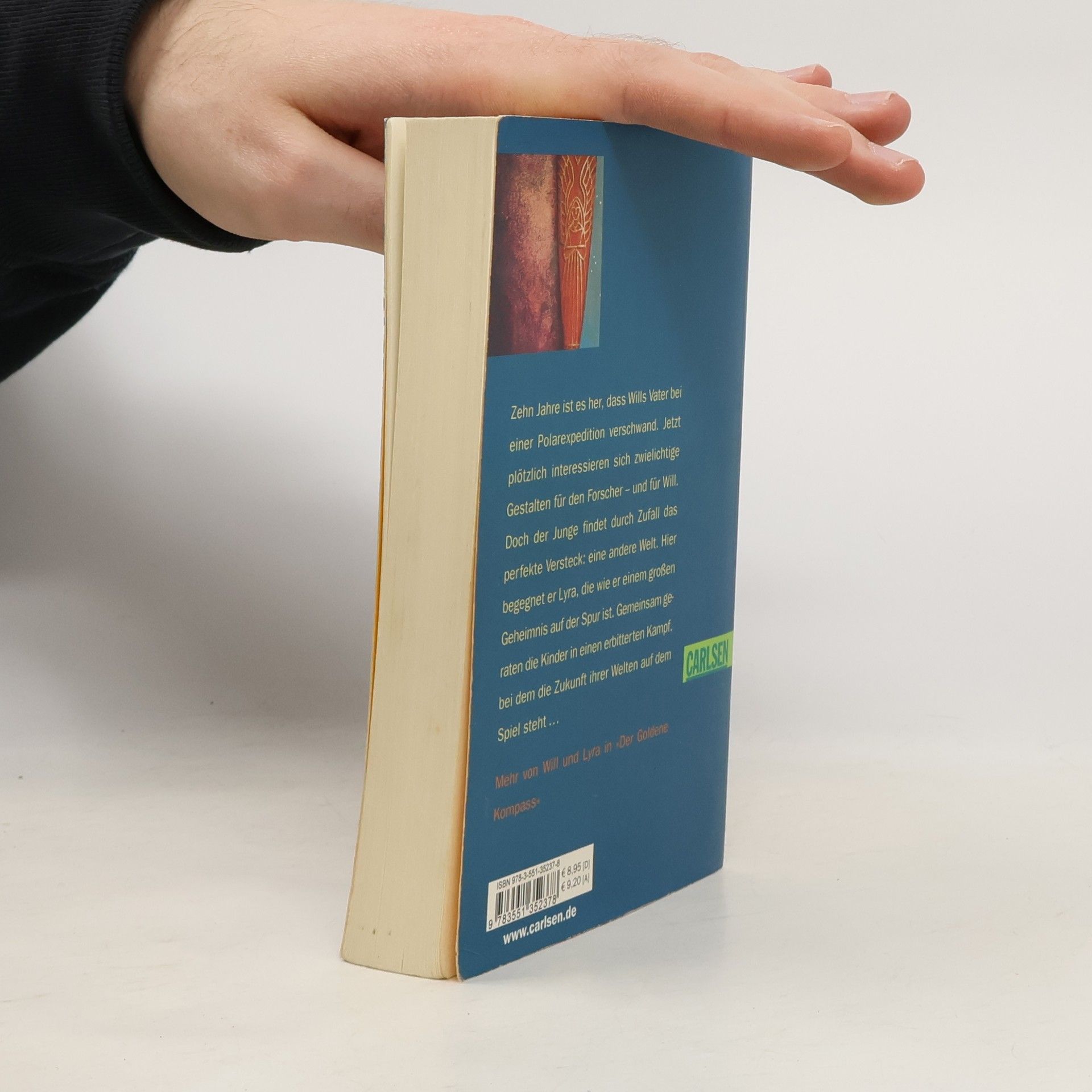 Vor vielen Jahren verschwand Wills Vater bei einer Expedition in den hohen Norden. War auch er auf der Suche nach dem „Geheimnis des Staubs“, wie Mrs Coulter und der machthungrige Lord Asriel? Das wollen Will und Lyra herausbekommen. Dabei entdecken sie den Turm der Engel und das Magische Messer, mit dem man Türen von der normalen in die Welt hinter dem Polarlicht schneiden kann. Aber sie geraten auch in einen erbitterten Kampf zwischen Hexenclans und Engeln, seelenlosen Kriegern und gesichtslosen Schattenwesen, einen Kampf auf Leben und Tod.