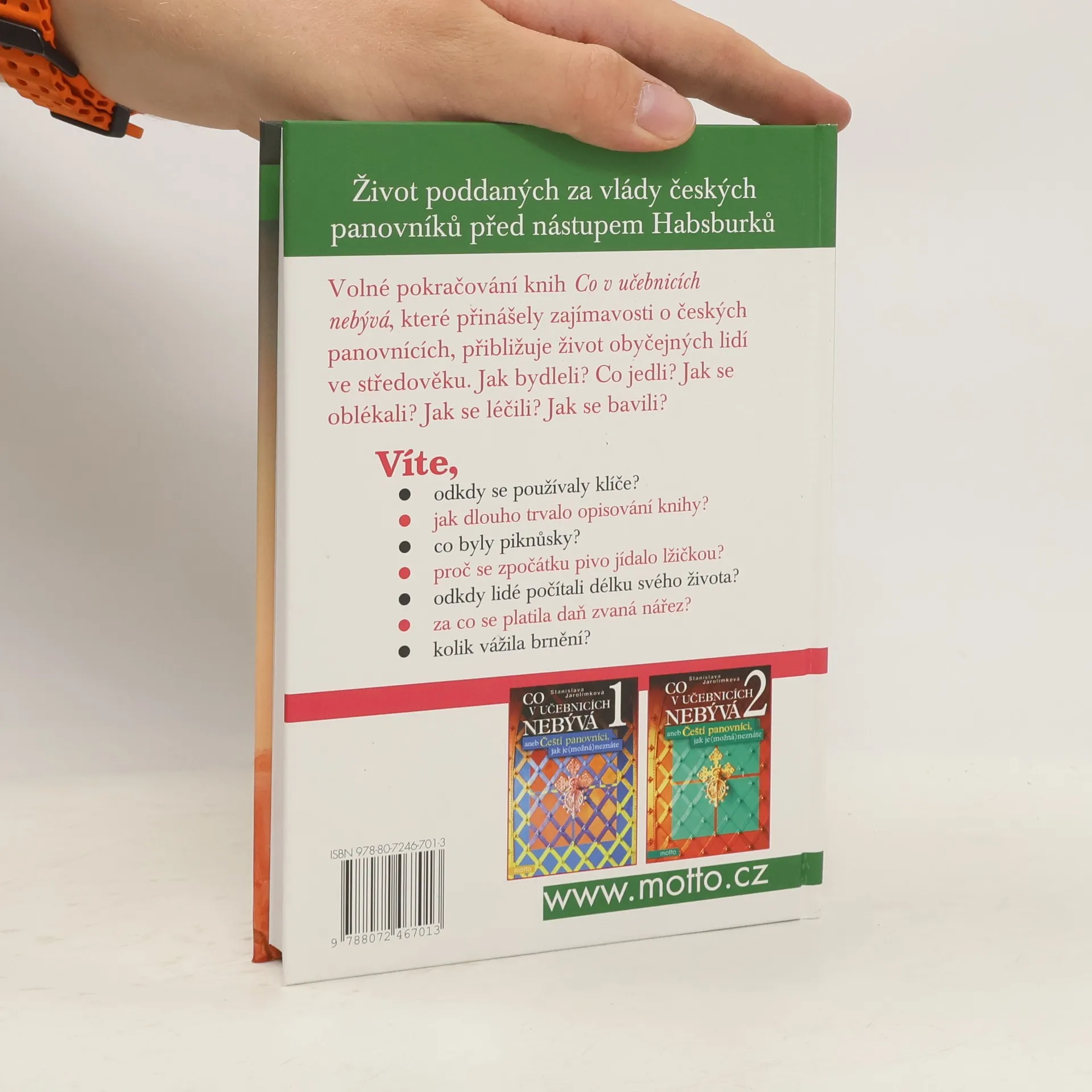Život poddaných za vlády českých panovníků před nástupem Habsburků. Volné pokračování knih Co v učebnicích nebývá, které přinášely zajímavosti o českých panovnících, přibližuje život obyčejných lidí ve středověku. Jak bydleli? Co jedli? Jak se oblékali? Jak se léčili? Jak se bavili?