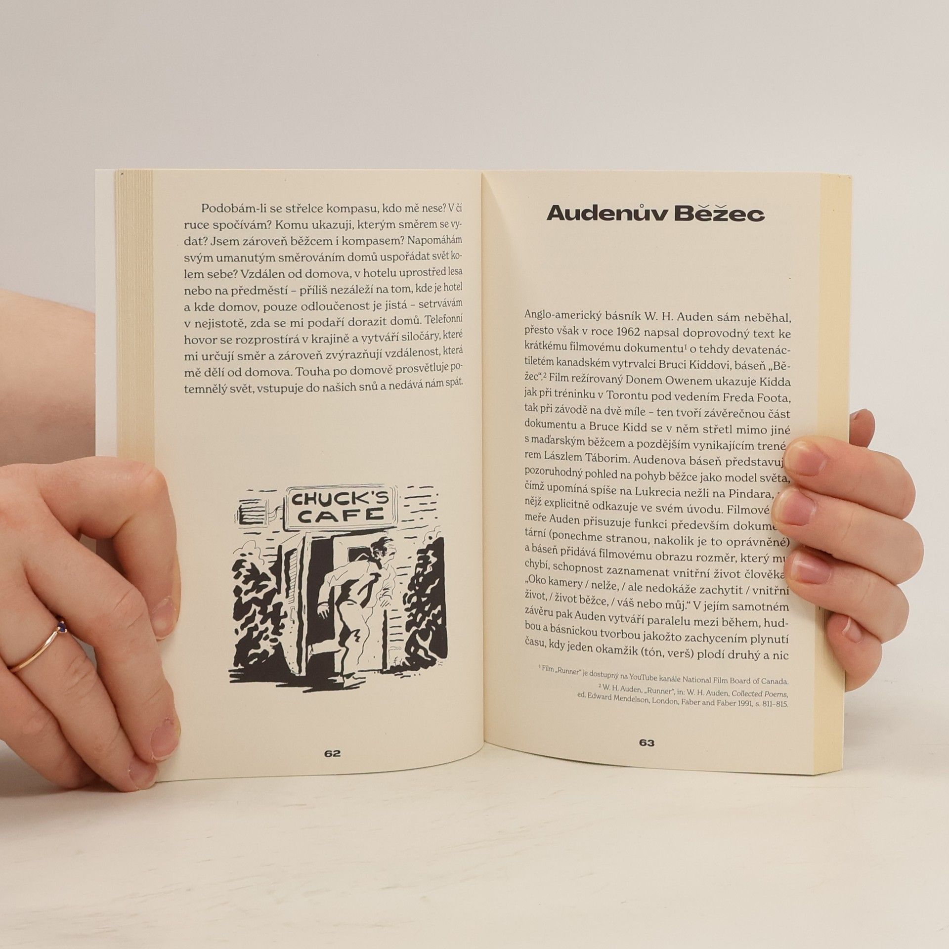 Co nás nutí k tomu, abychom si znovu a znovu nazouvali boty a vybíhali ze svých domovů, navzdory bolesti, nepřízni počasí nebo nedostatku času? Abychom se jen tak rozeběhli ze svahu, napříč loukou, vyběhli na kopec nebo se pokusili co nejrychleji oběhnout blok domů? Jan Havlíček v esejích,recenzích a poznámkách původně psaných pro běžecký časopis B žádnou definitivní odpověď nedává. Ukazuje však, jakým způsobem je běh součástí našich životů, jak nám umožňuje postavit se věcem, kterým nelze utéct, a jak se díky běhu dostáváme do kontaktu s tím, co nás přesahuje. A to je mnohem víc, než bychom si při dvanáctiminutovce v hodině tělesné výchovy mysleli.