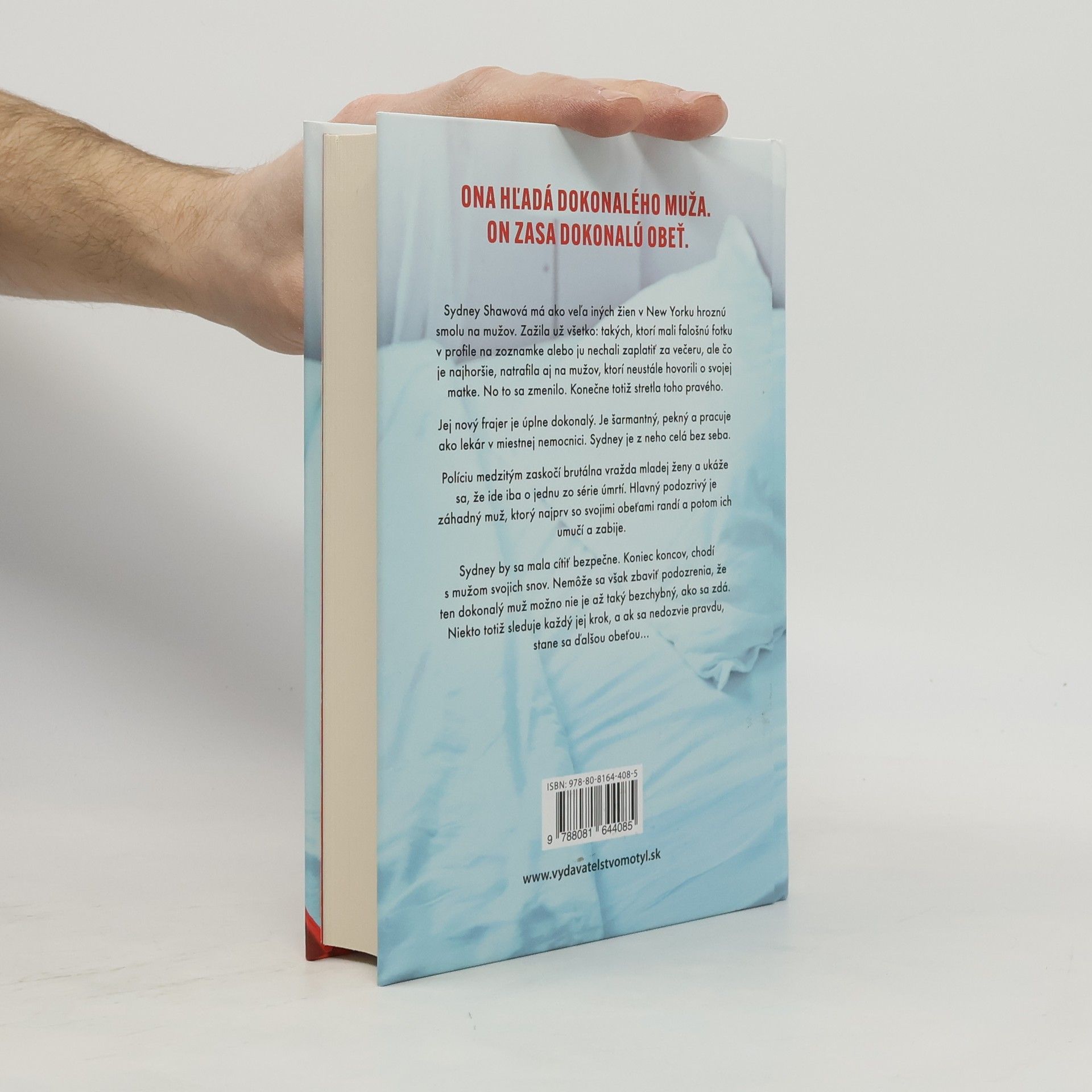 Ona hľadá dokonalého muža. On zasa dokonalú obeť. Sydney Shawová má ako veľa iných žien v New Yorku hroznú smolu na mužov. Zažila už všetko: takých, ktorí mali falošnú fotku v profile na zoznamke alebo ju nechali zaplatiť za večeru, ale čo je najhoršie, natrafila aj na mužov, ktorí neustále hovorili o svojej matke. No to sa zmenilo. Konečne totiž stretla toho pravého. Jej nový frajer je úplne dokonalý. Je šarmantný, pekný a pracuje ako lekár v miestnej nemocnici. Sydney je z neho celá bez seba. Políciu medzitým zaskočí brutálna vražda mladej ženy a ukáže sa, že ide iba o jednu zo série úmrtí. Hlavný podozrivý je záhadný muž, ktorý najprv so svojimi obeťami randí a potom ich umučí a zabije. Sydney by sa mala cítiť bezpečne. Koniec koncov, chodí s mužom svojich snov. Nemôže sa však zbaviť podozrenia, že ten dokonalý muž možno nie je až taký bezchybný, ako sa zdá. Niekto totiž sleduje každý jej krok, a ak sa nedozvie pravdu, stane sa ďalšou obeťou…